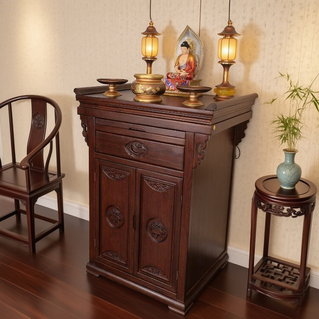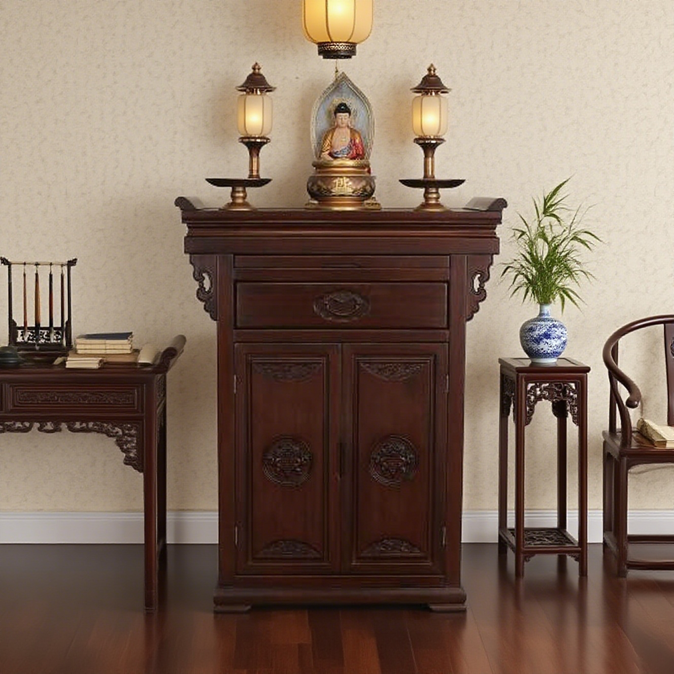 📚 新中式佛柜佛堂实木佛堂中堂神台供桌佛台香案家用小型家庭供香桌