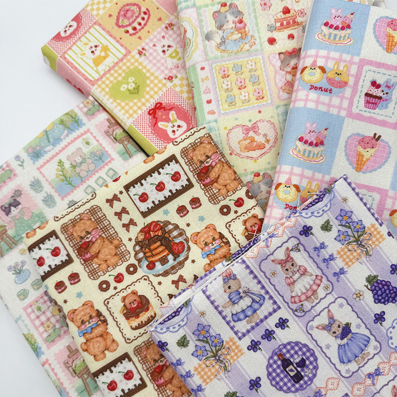📚 卡通拼布格子印花布加密棉麻布料装饰diy手工布头桌布沙发布面料