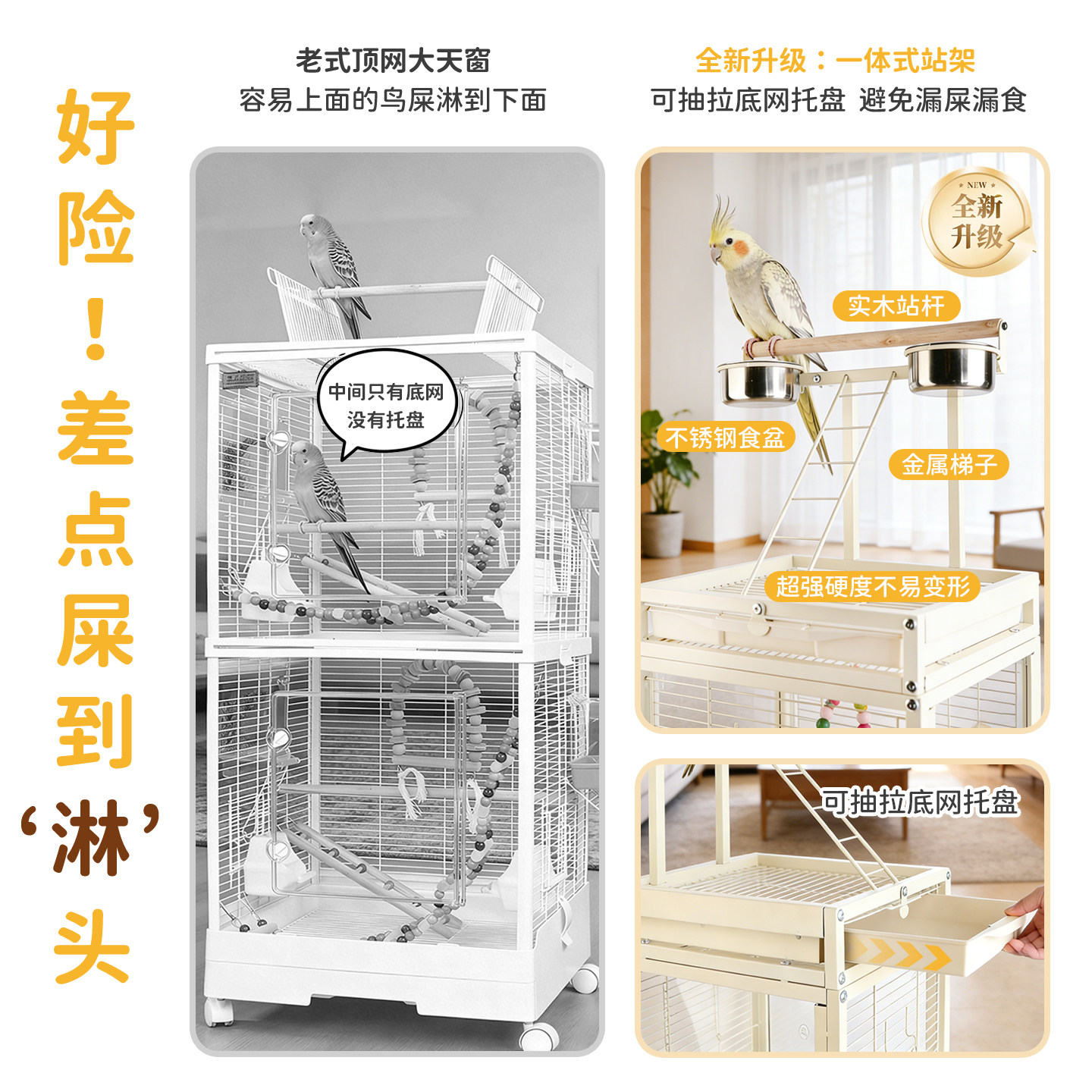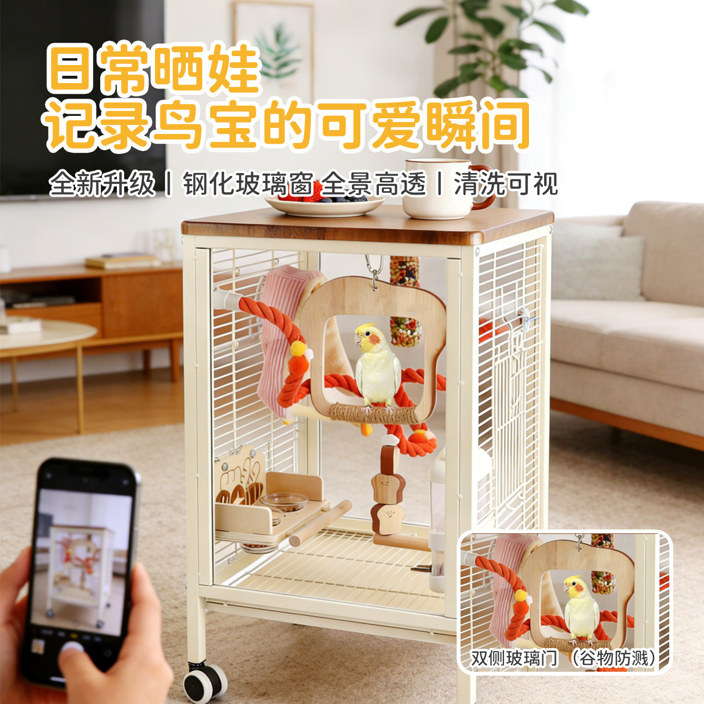 📚 鸟笼鹦鹉笼新型横丝防溅玻璃小太阳玄凤家用豪华别墅专用生态笼子