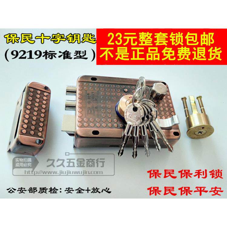 📚 保民外装门锁老式铁门防盗门锁十字钥匙锁老式大门锁木门锁包邮