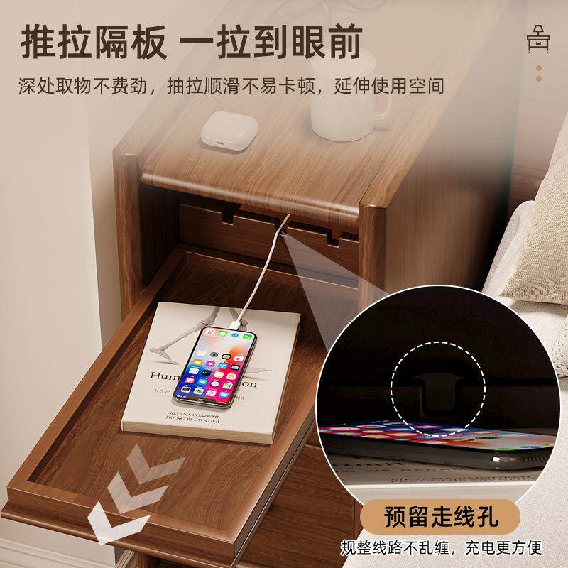 📚 实木床头柜小型超窄客厅卧室床边置物架床头小边几20CM靠墙收纳柜