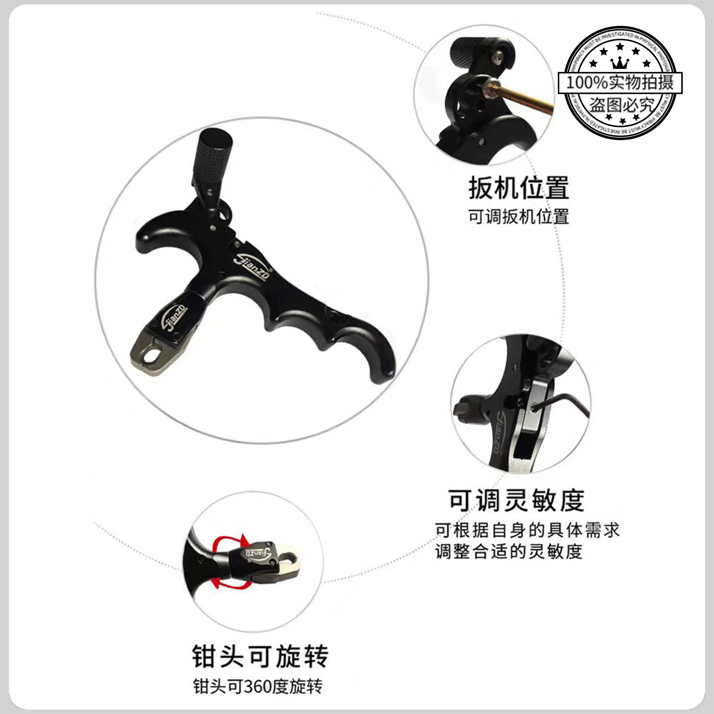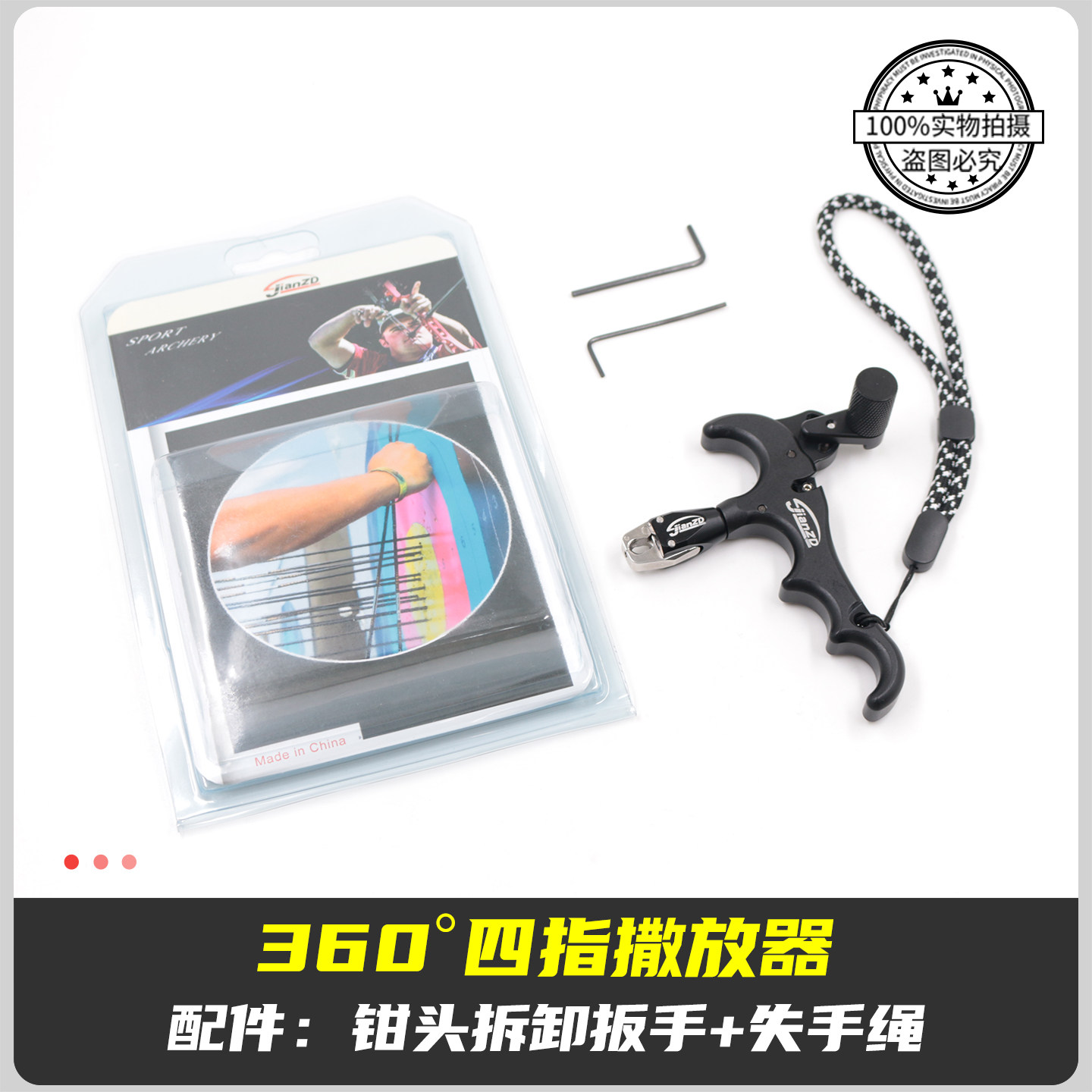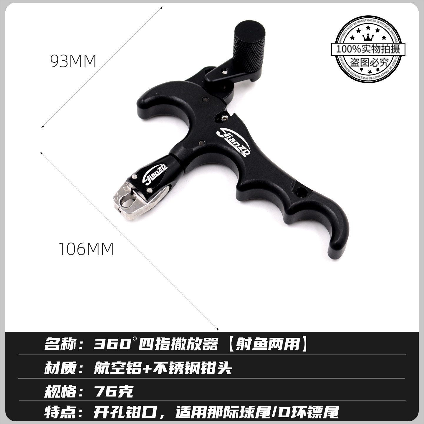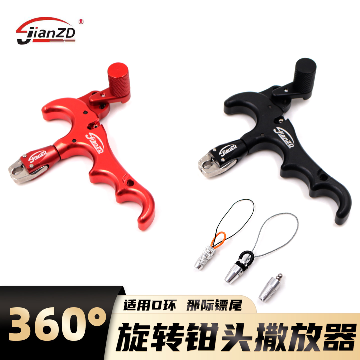 📚 新款两用鱼镖撒放器四指复合弓射箭握撒那际D环刀锋火球360°旋转