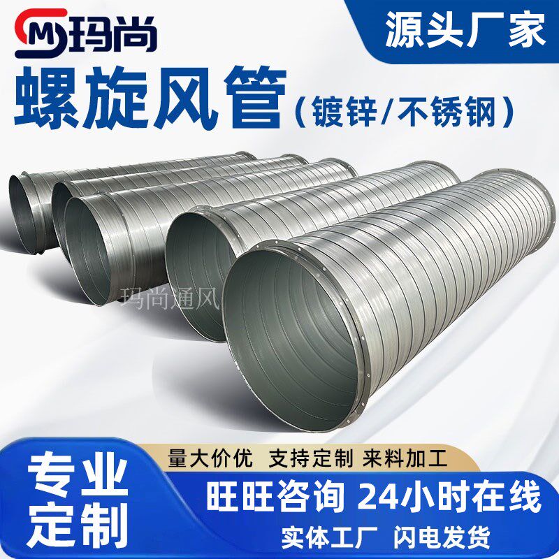📚 304不锈钢螺旋风管工业除尘排烟通风管道镀锌白铁皮螺旋风管厂家