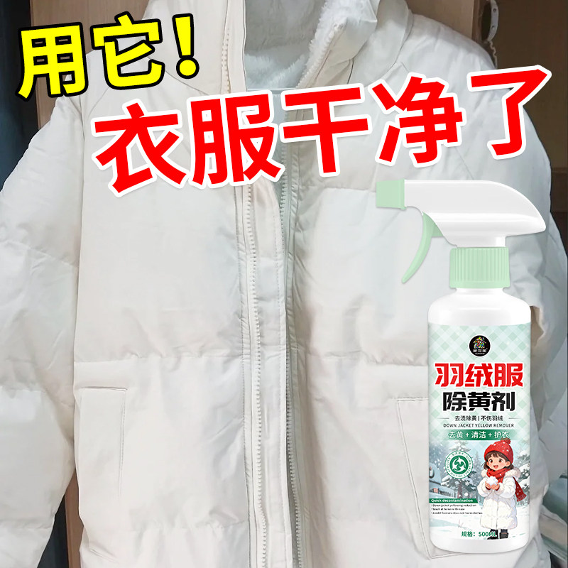 📚 羽绒服去黄剂发黄专用清洗剂羽绒氧化去黄洗白恢复剂白衣干洗剂拾