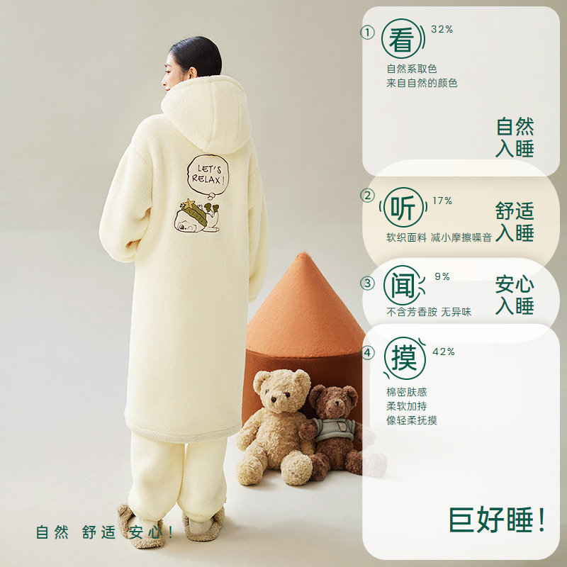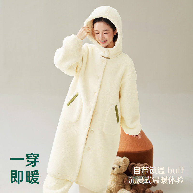 📚 安之伴【巨保暖】北羔绒睡袍女冬季加厚珊瑚绒睡衣冬款连帽家居服