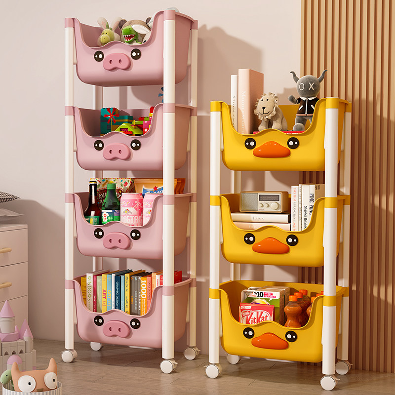 📚 儿童书架落地零食玩具收纳架可移动小推车置物架家用多层组装书柜