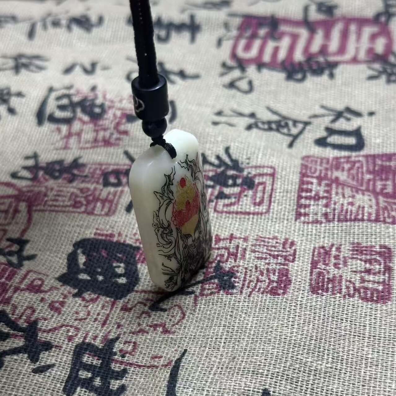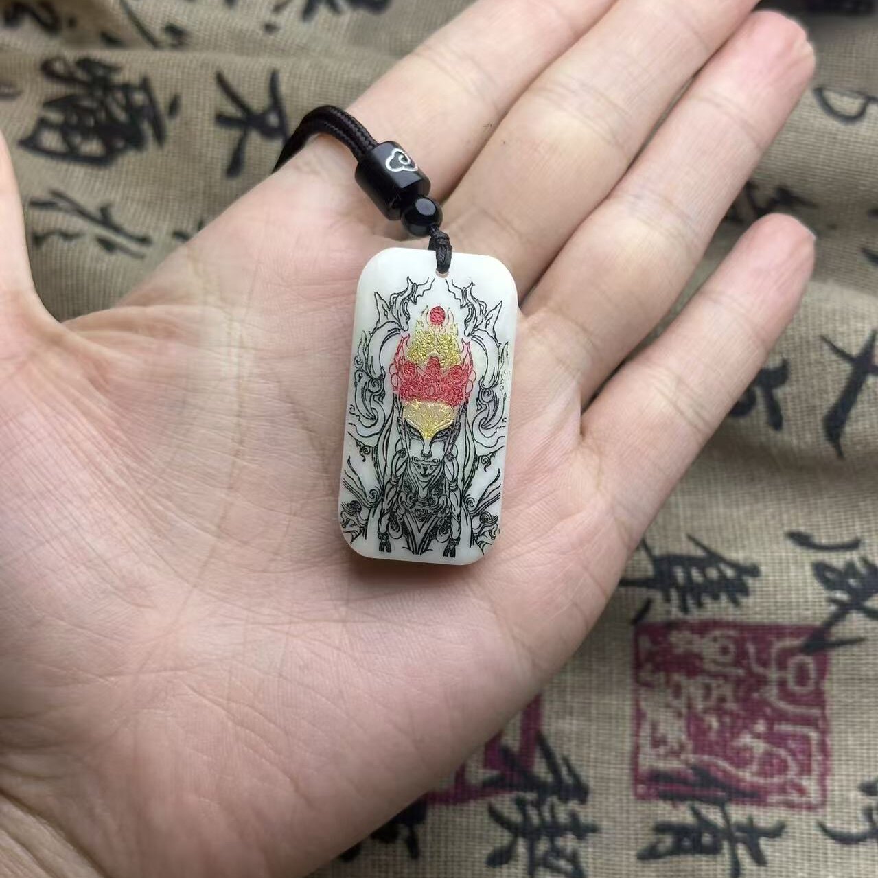 📚 岫玉平安白鹤童子手工无事牌吊坠挂件男女项链国风护身符招财道门
