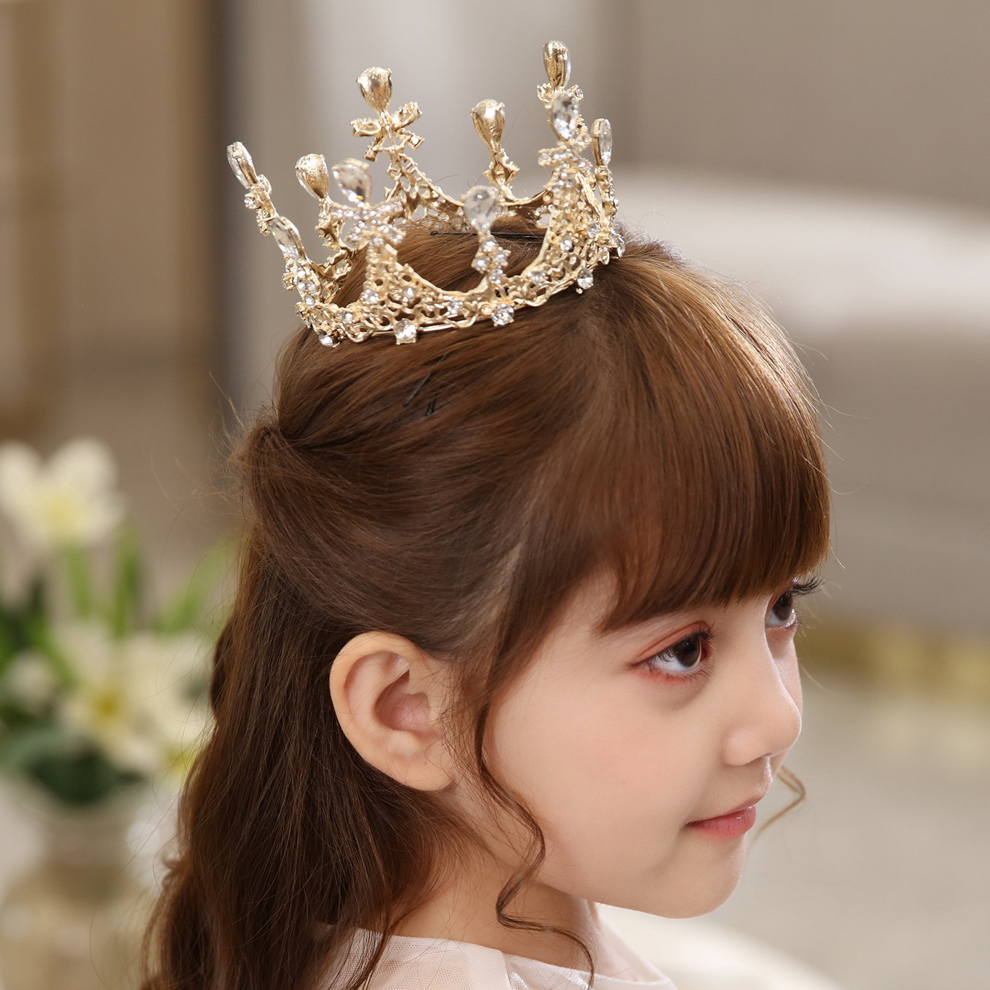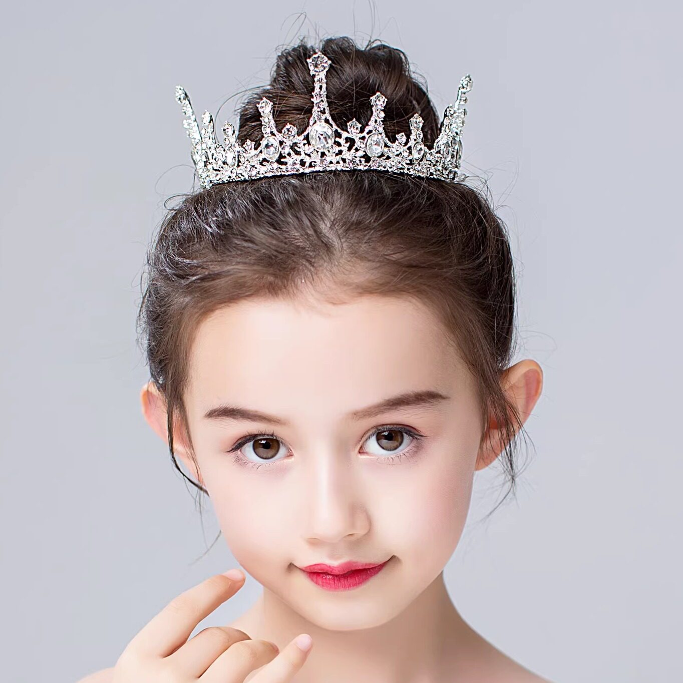 📚 新年皇冠儿童头饰公主女童圆冠节日生日水晶王冠演出钢琴发饰年会