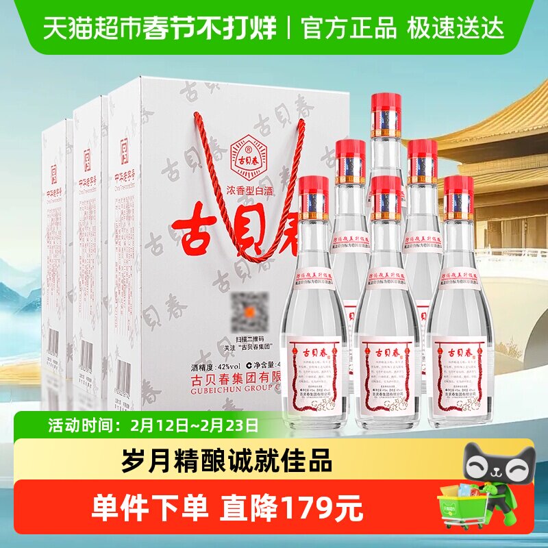 📚 古贝春 白板礼盒 浓香型白酒 42度 475ml*2瓶*3盒 整箱装 送礼礼