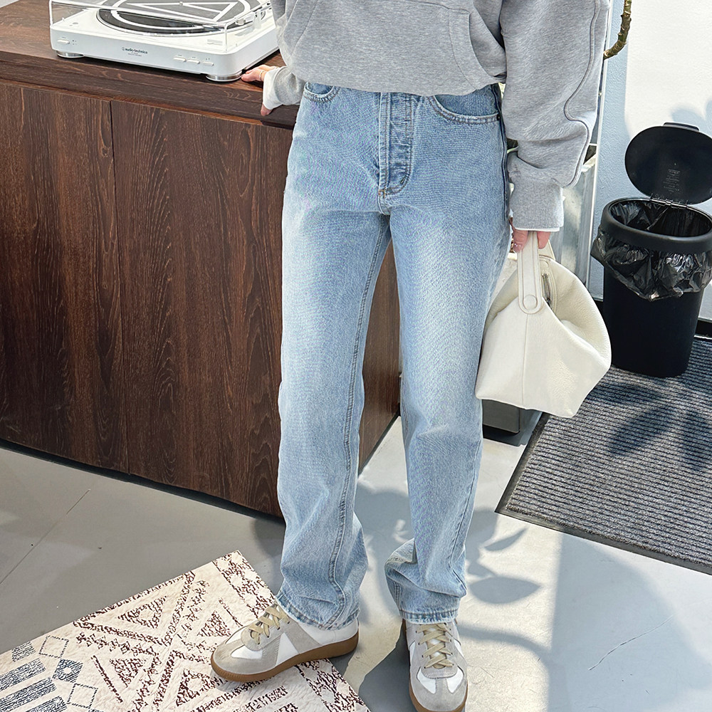 📚 【石墨做旧】高腰无弹重磅牛仔窄脚直筒牛仔裤牛仔裤显瘦NZS009