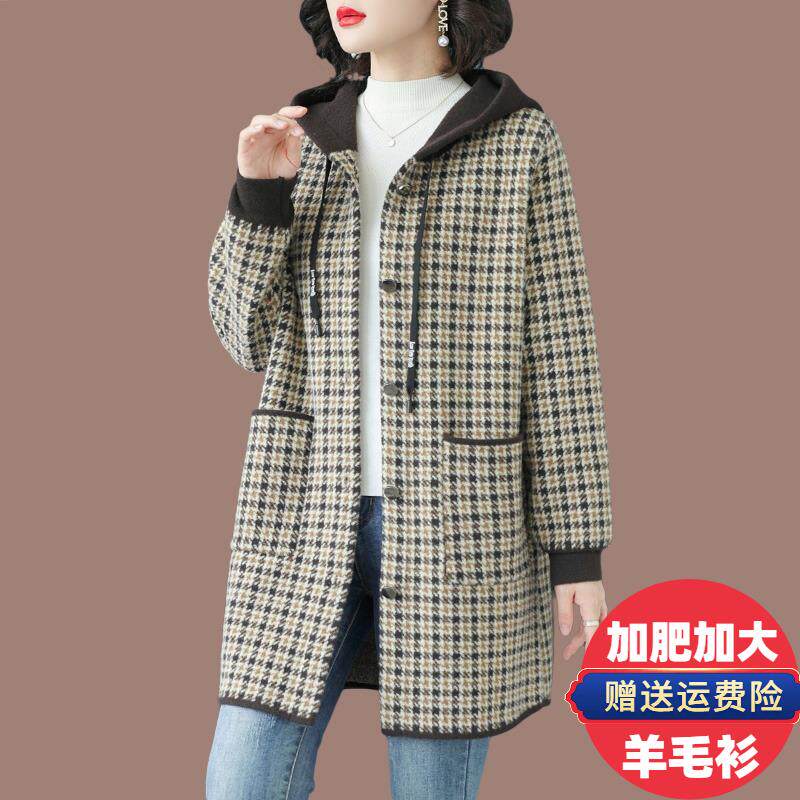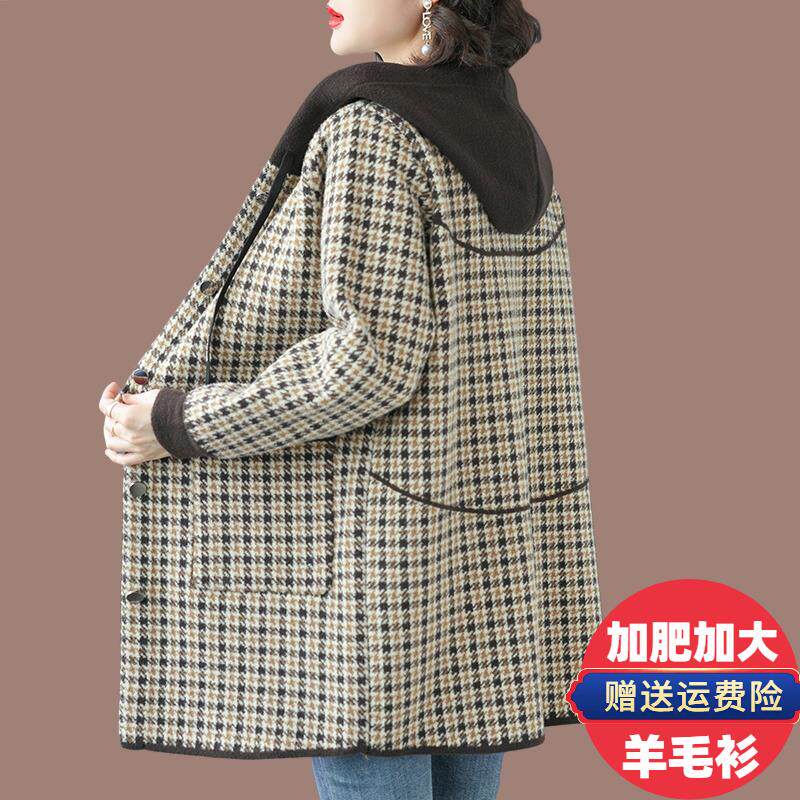 📚 双面羊绒大衣女中年妈妈厚款羊毛开衫外套加肥大尺码中长版连帽毛