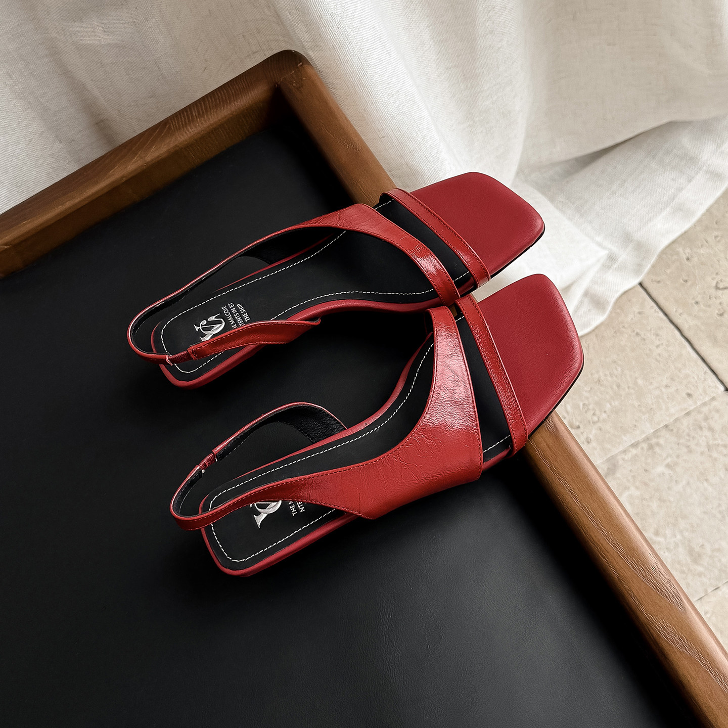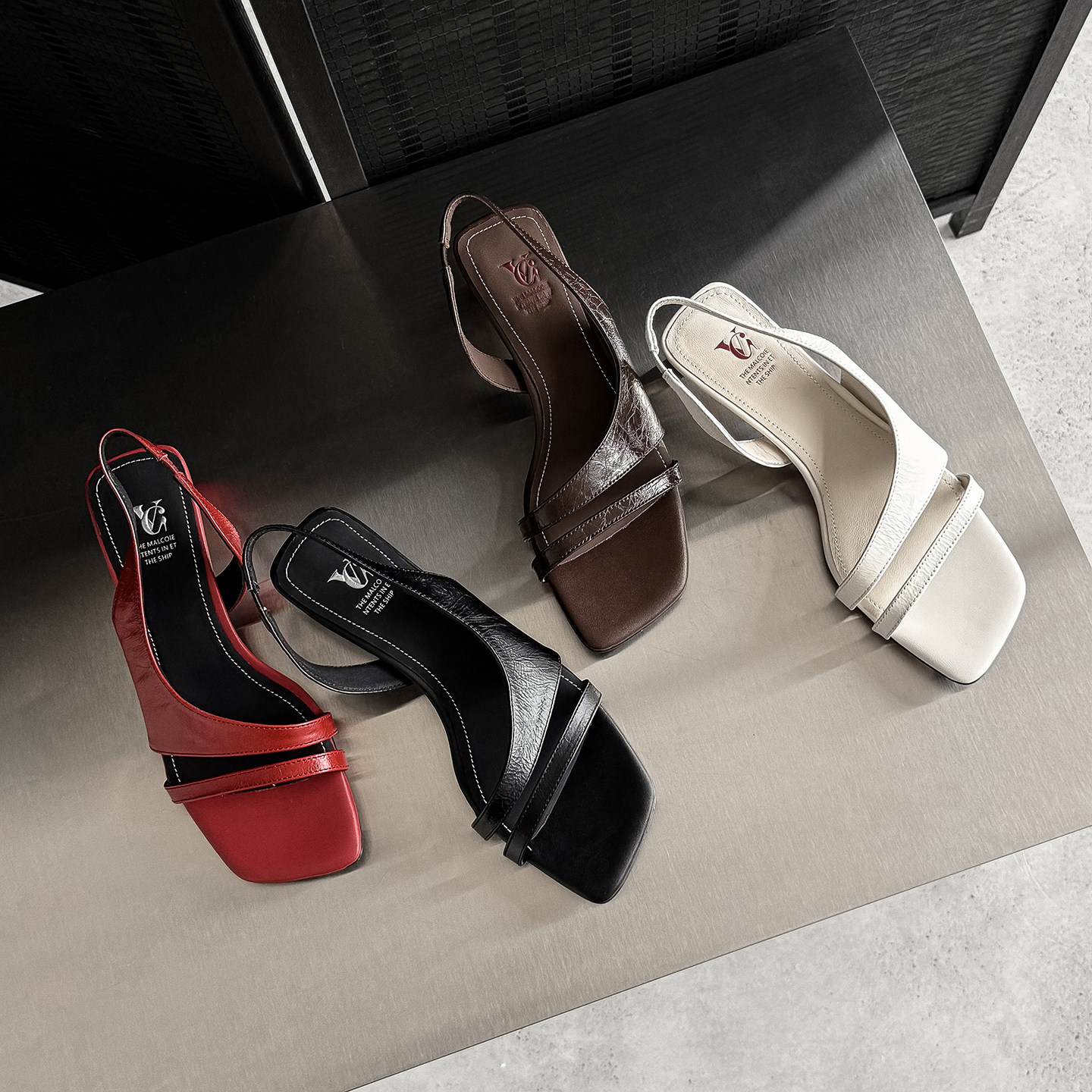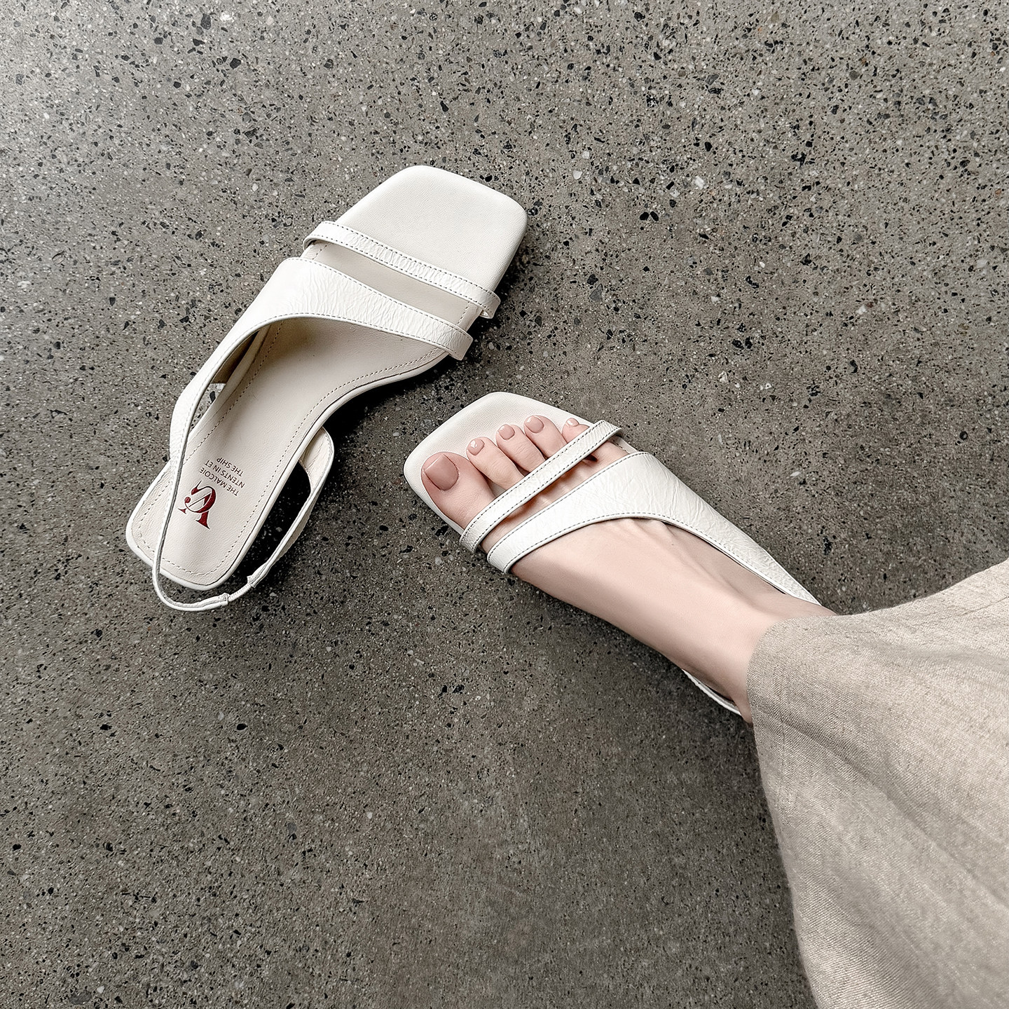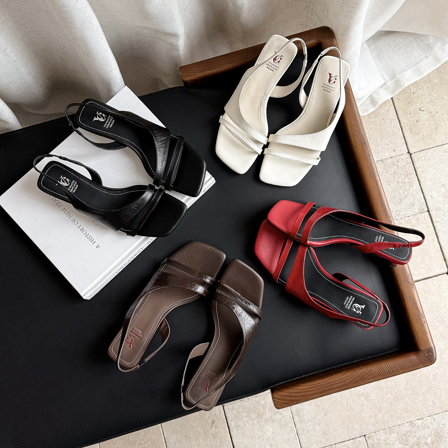 📚 轻熟极简 Literary头层真皮牛皮方头露趾凉鞋女夏季透气舒适猫跟