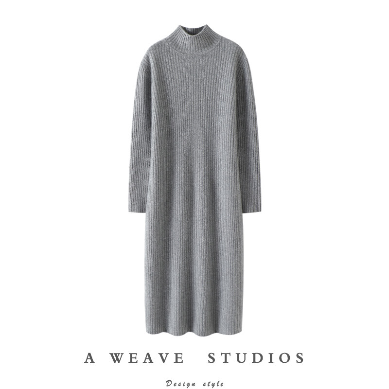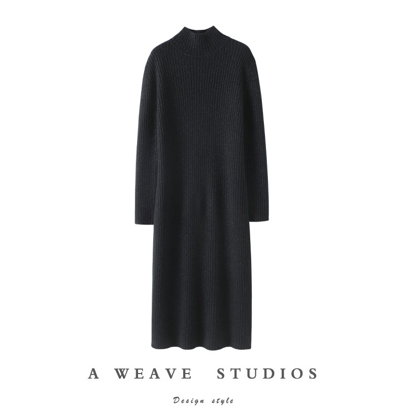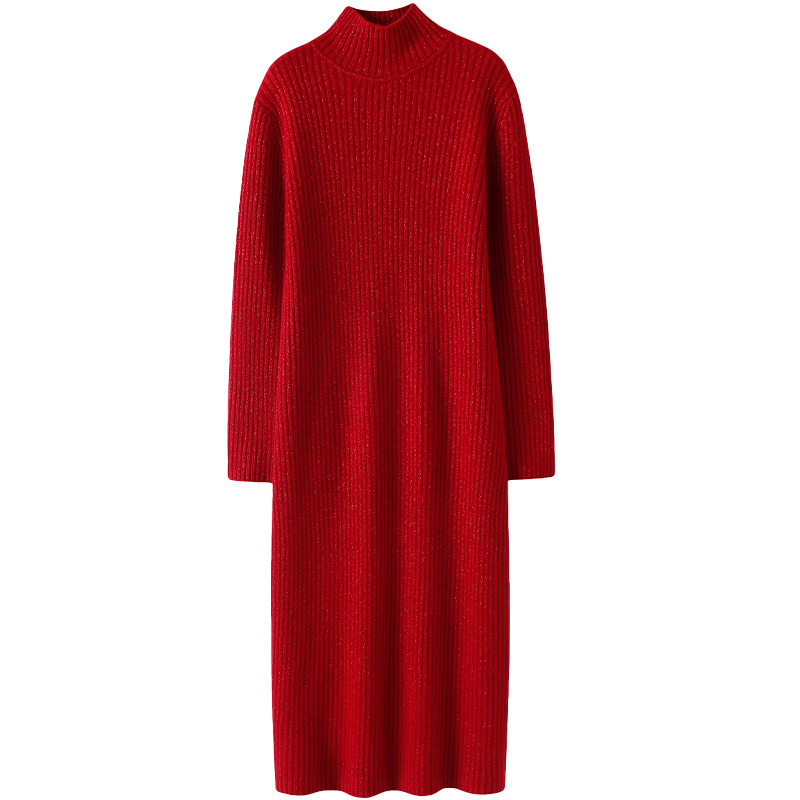 📚 启超追求质感!加厚金线红色高领羊绒连衣裙女羊绒衫长款毛衣秋冬
