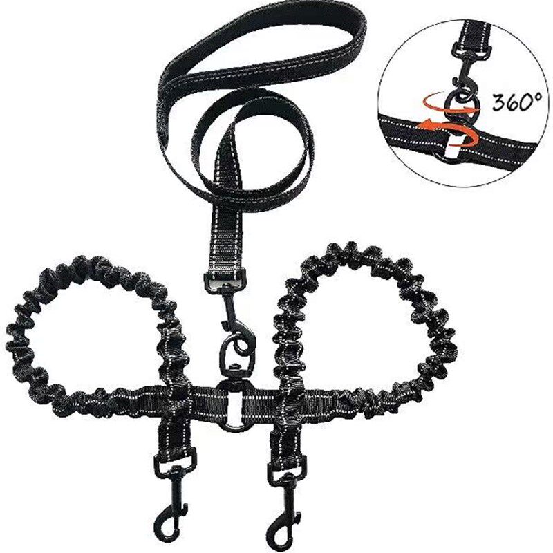 📚 Thick Nylon Double Dog Leash Soft Leather Control Leash