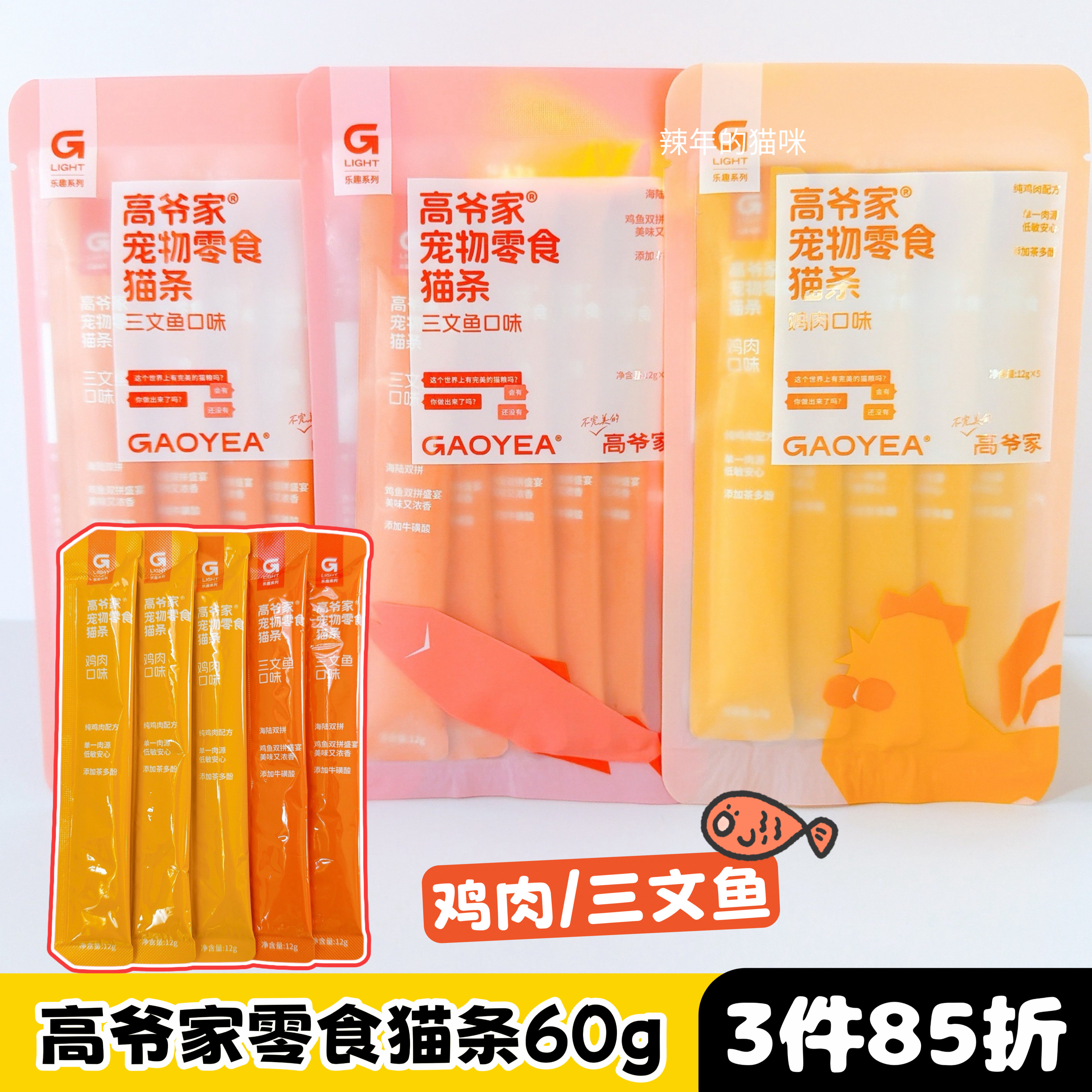 📚 高爷家猫条猫零食猫咪零食成猫幼猫补充营养多口味湿粮10支/盒