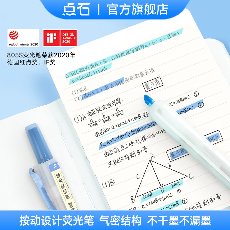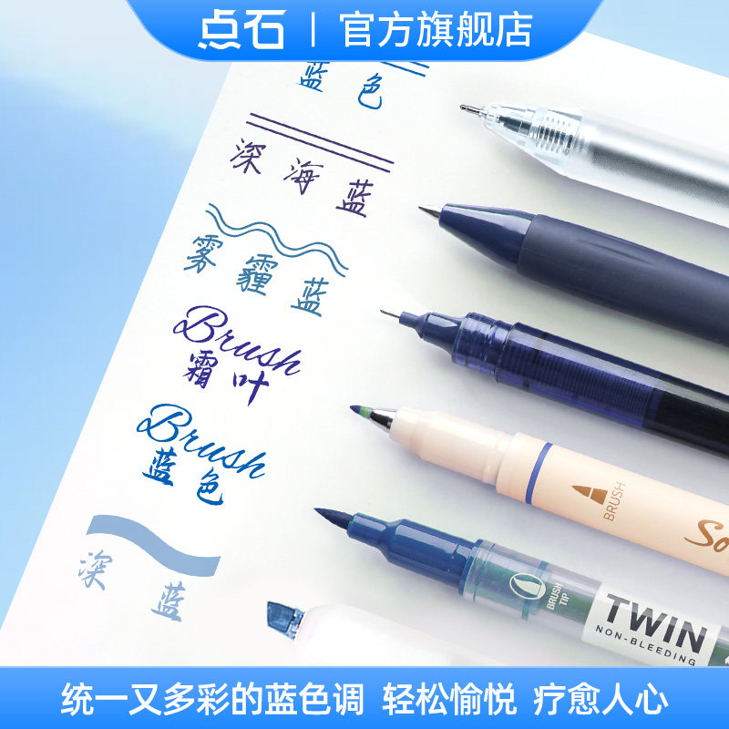 📚 【满5支包邮】点石制笔蓝笔按动中性笔标记批改组速干子弹头走珠笔速干顺滑办公签字蓝色软握胶针管头直液式