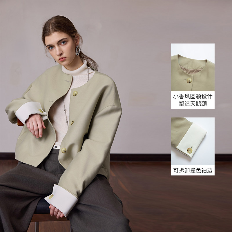 📚 MSLAN新中式 冬季季撞色可拆卸袖边外套时尚轻盈保暖羽绒服