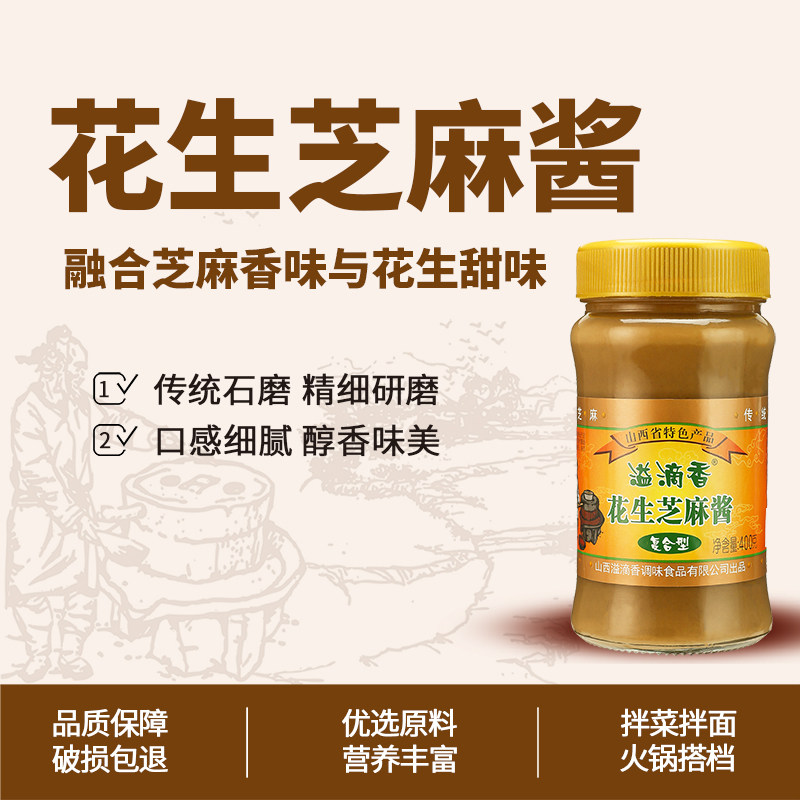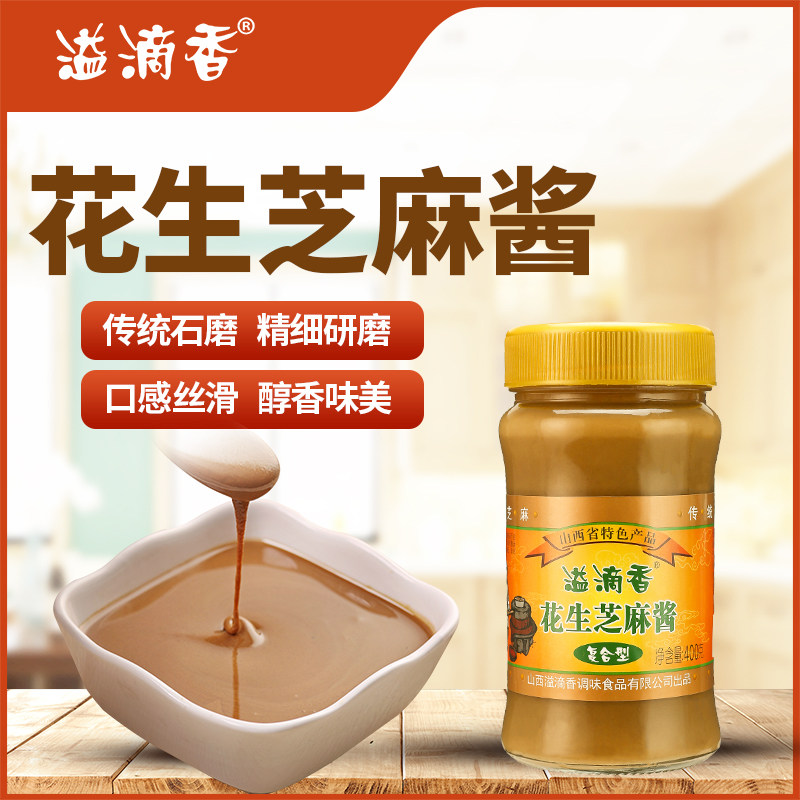 📚 溢滴香传统石磨花生芝麻酱400g拌菜拌热干面凉拌调味麻酱火锅蘸料
