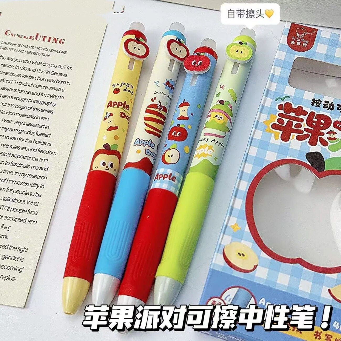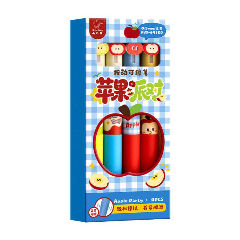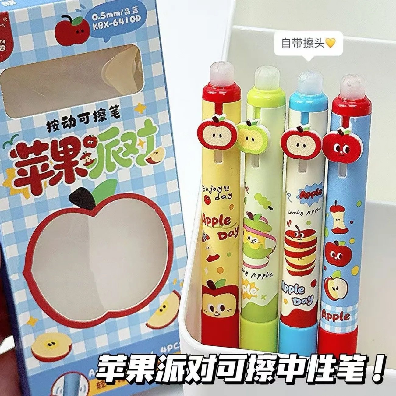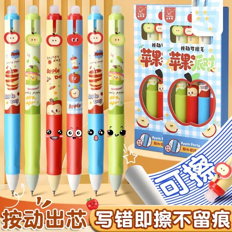 📚 2026新款ins女生小众小学初中可爱苹果派对按动可擦笔软握正姿中性笔卡通小学三年级专用热敏擦黑色晶蓝色笔