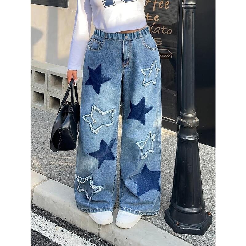 📚 School Ready Girls Y2K StarPatterned WideLeg Jeans Comfy