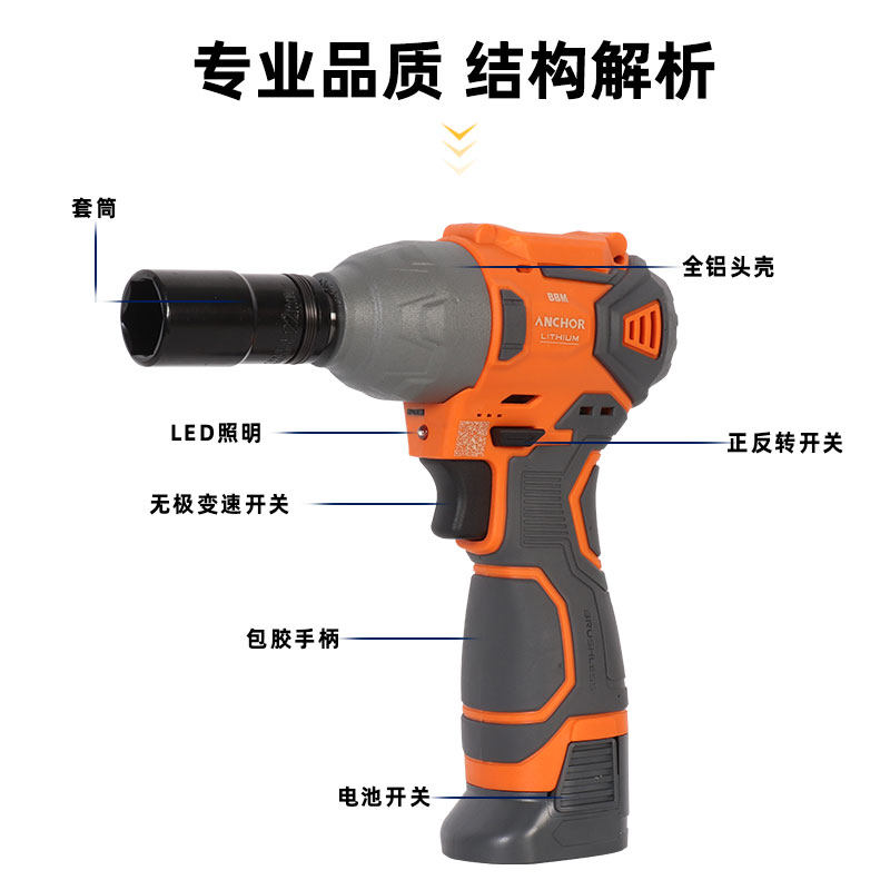 📚 铁锚16.8V无刷冲击扳手小型电动扳手锂电充电式大扭力风炮DCW8