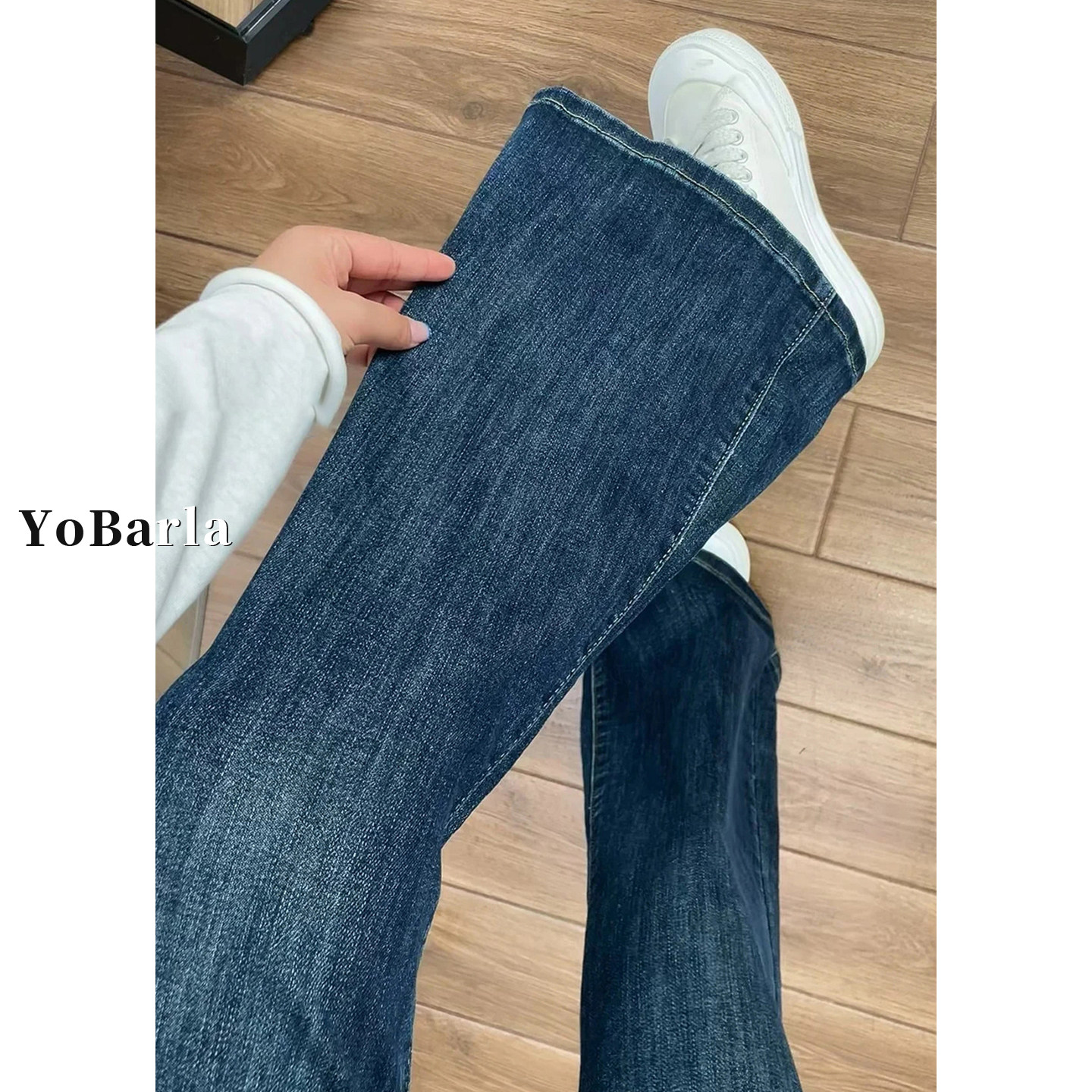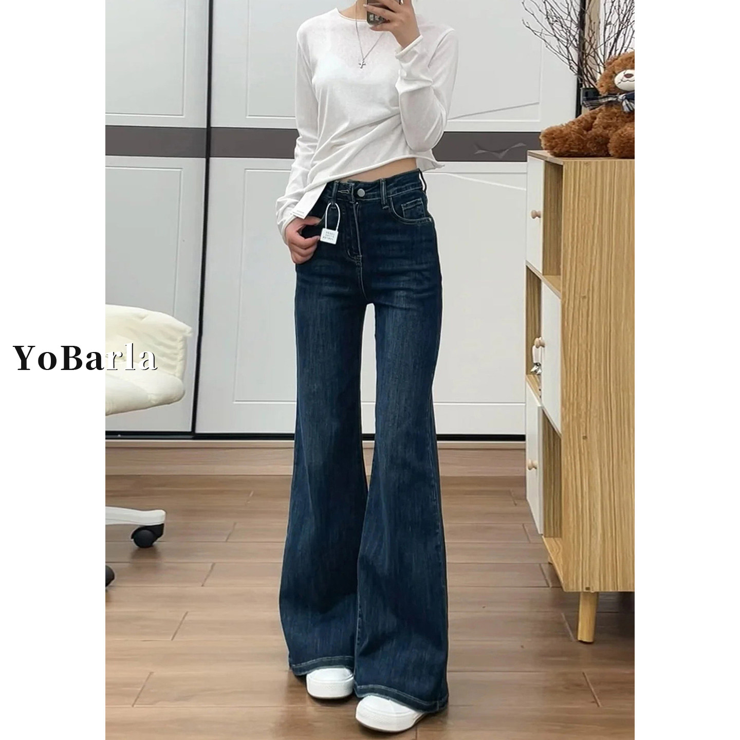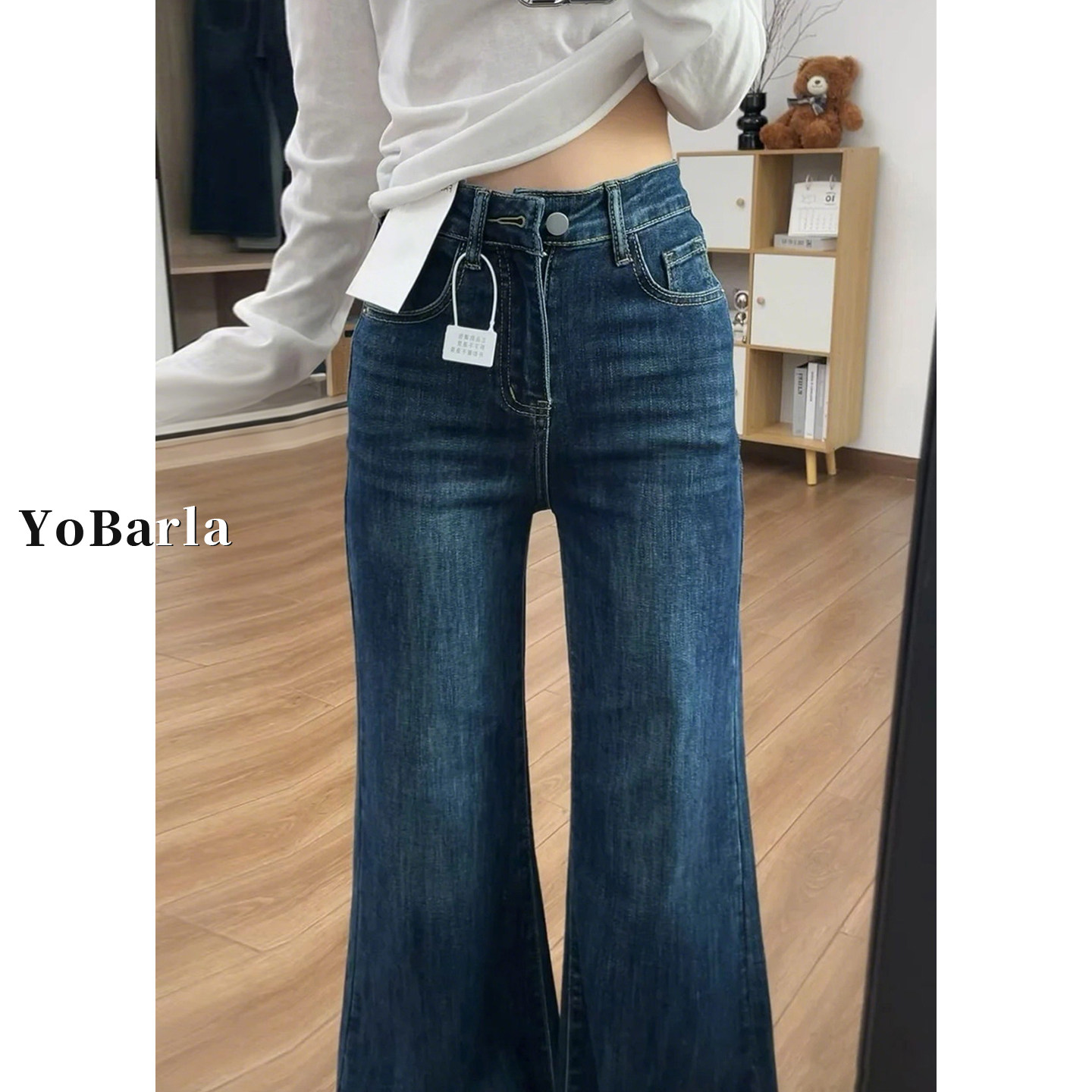 📚 复古微喇牛仔裤女春季新款大码胖mm宽松显瘦高腰弹力喇叭马蹄裤子