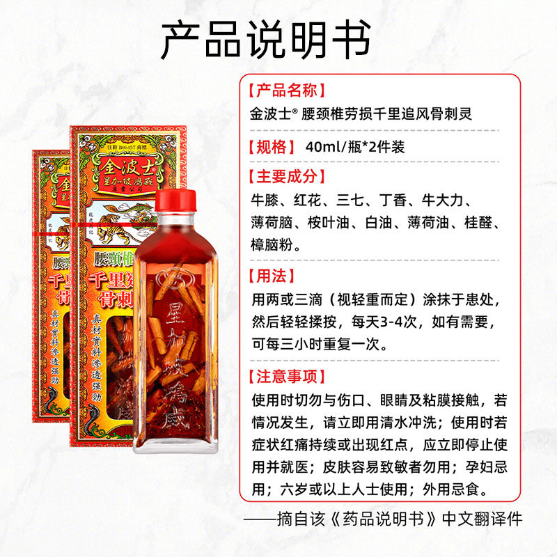 💥【自营】中国香港金波士千里追风骨刺灵活络油腰颈椎劳损,好物推荐!券后价仅300,你值得拥有!