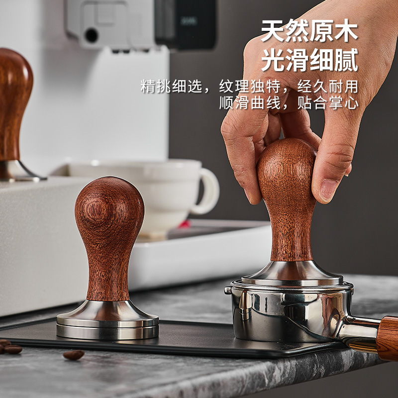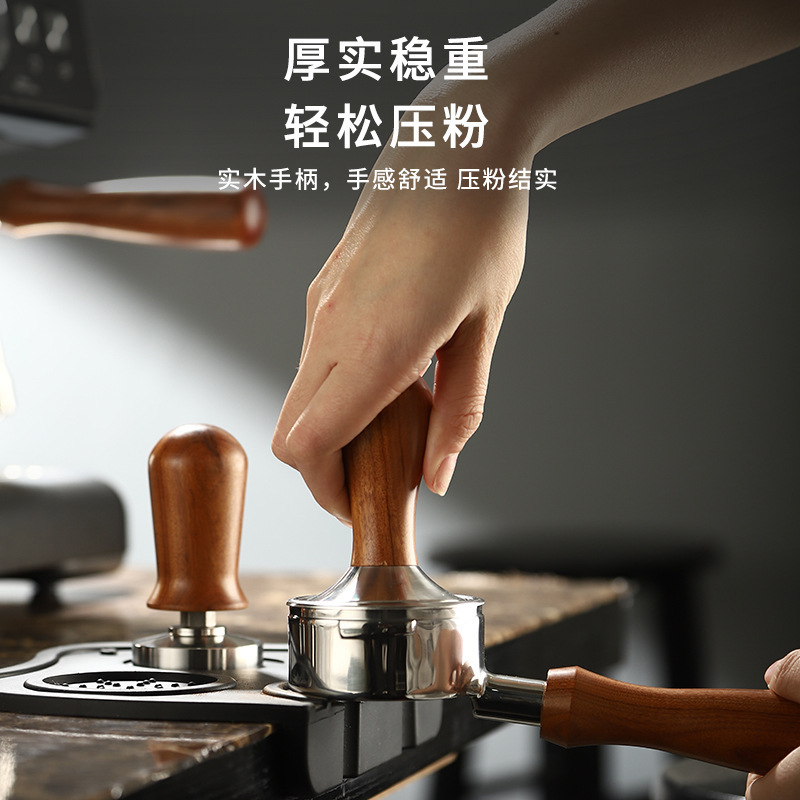 📚 意式咖啡压粉器实木手柄实心平底不锈钢填压压粉锤适用德龙半自动