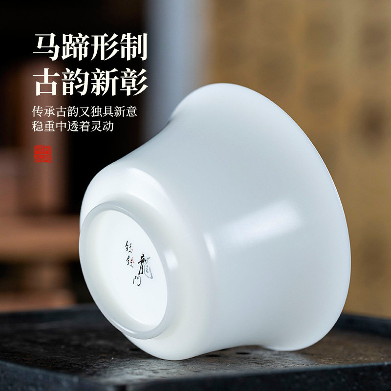 📚 钰铨龙门 冰种超薄胎匠心马蹄盏 德化白瓷素烧手工品茗茶杯主人杯