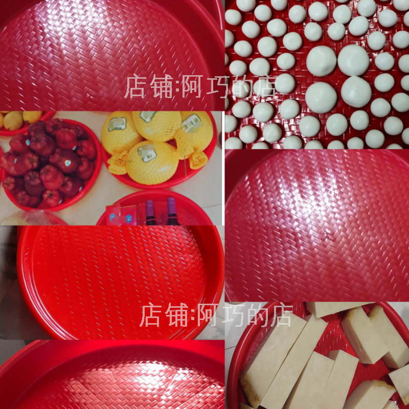 📚 红盘子潮汕拜拜祖大托盘拜神结婚喜盘60cm供果盘塑料圆形晾晒乔迁