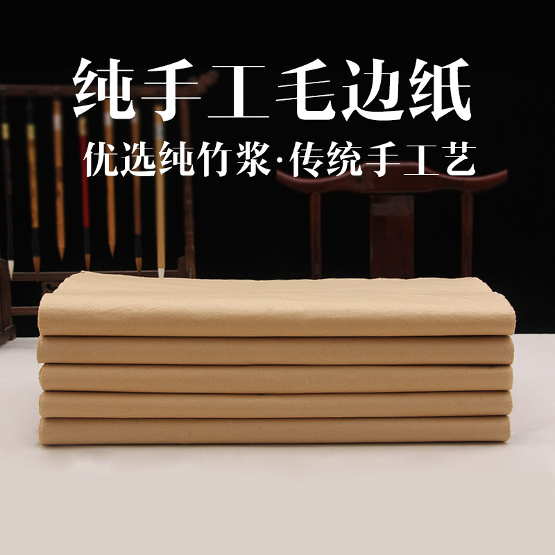📚 纯手工毛边纸元书纸加厚无格纯竹浆小楷毛笔书法创作练习用纸