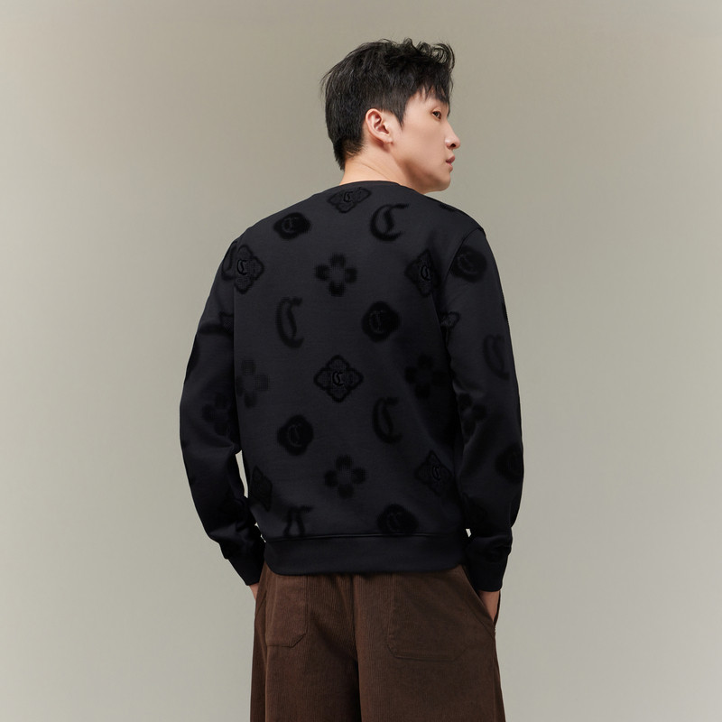 📚 【轻奢植绒窗花】卡宾重磅纯棉卫衣男装2025秋季新款印花圆领上衣