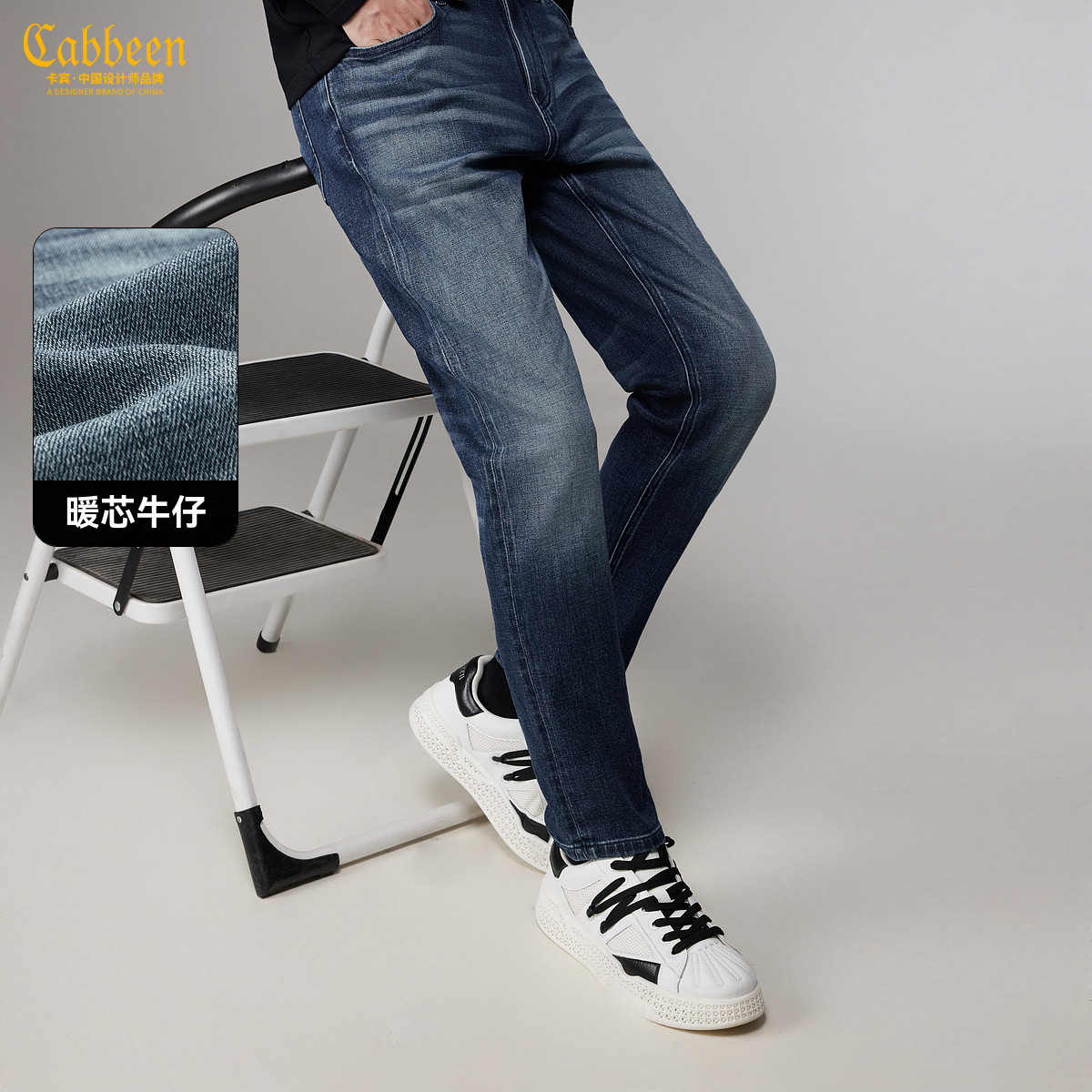 📚 【暖芯牛仔】卡宾重工洗水牛仔裤男装2025冬季新款弹力猫须直筒裤