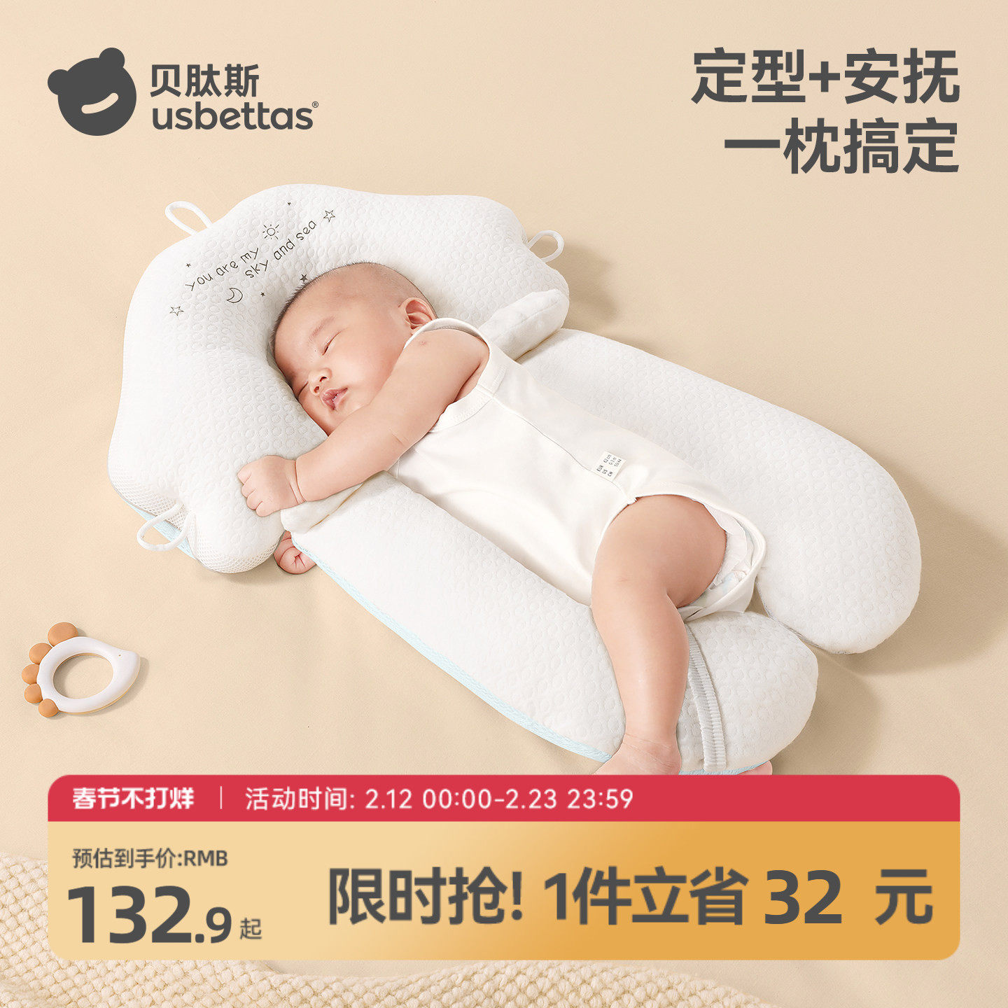 📚 贝肽斯婴儿定型枕头矫正头型安抚睡觉新生宝宝0到6个月安全感神器
