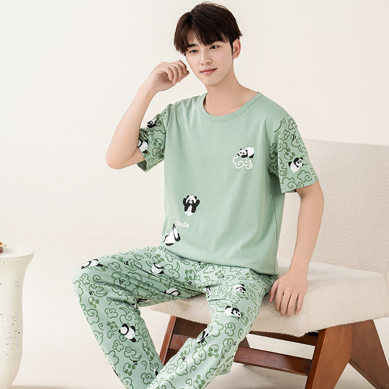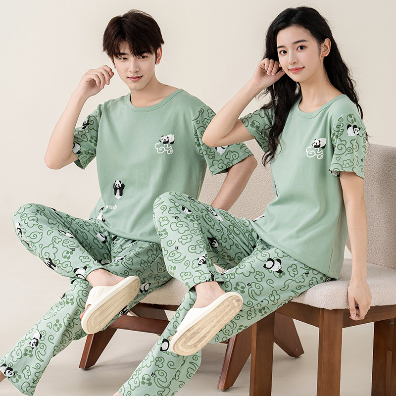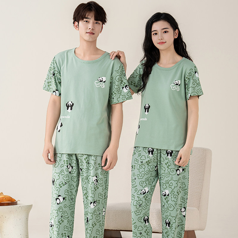 📚 夏季情侣睡衣女透气棉质短袖长裤夏天男青少年宽松卡通家居服套装