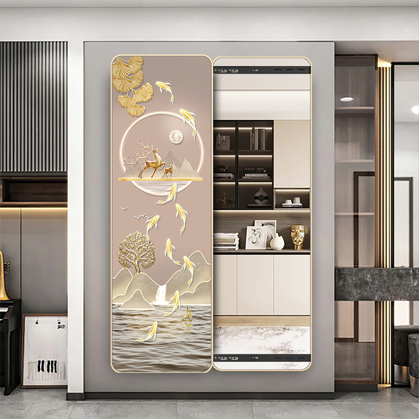 📚 艺术九鱼图隐形全身镜推拉隐藏式镜子卧室试衣镜壁挂式家用穿衣镜