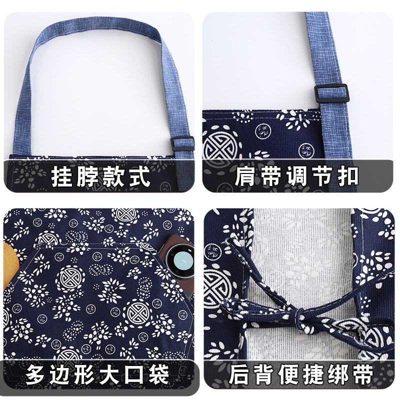 📚 简约帆布围裙餐饮上班采茶工作服透气耐磨厨房做饭家用耐脏围腰女
