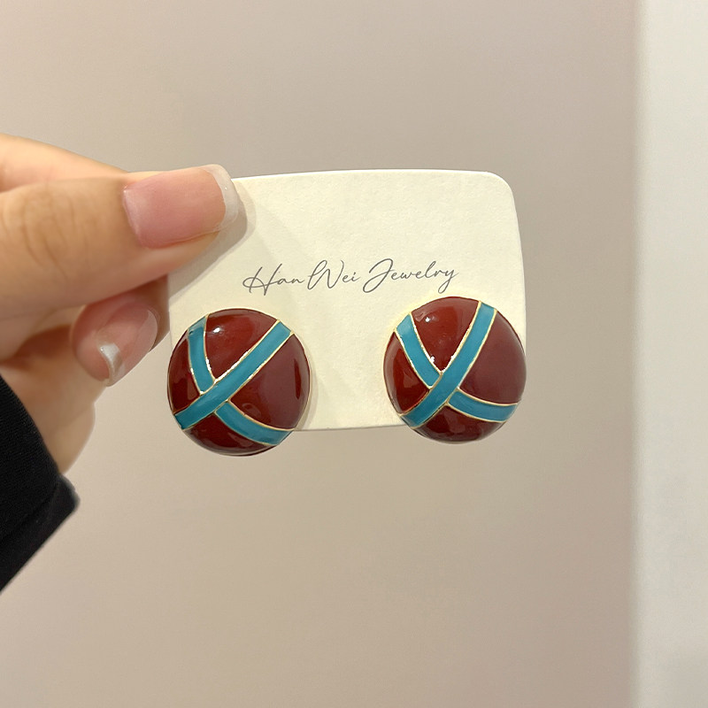 📚 复古港风撞色耳环轻奢高级感巨好看绝美耳钉小众独特精致气质耳饰
