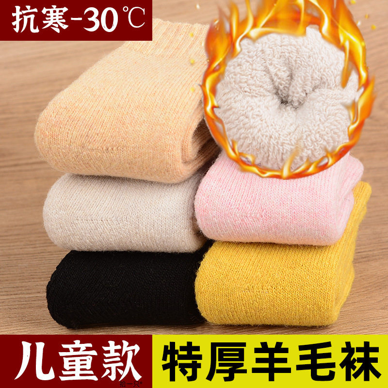 📚 东北哈尔滨旅游儿童羊毛袜冬季加厚加绒保暖毛圈袜中筒男童女童