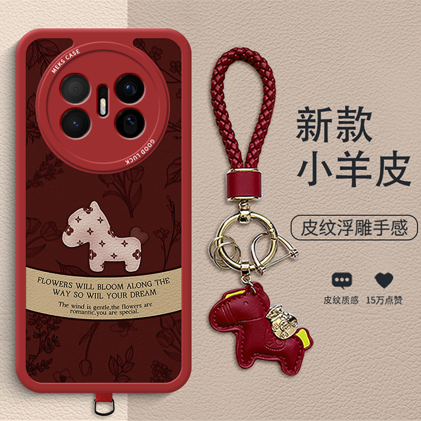 📚 风铃马书签红适用于华为Mate70Air手机壳新款80Pro复古Mate70创意mate30个性50Pro小羊皮高端挂饰防摔保护壳