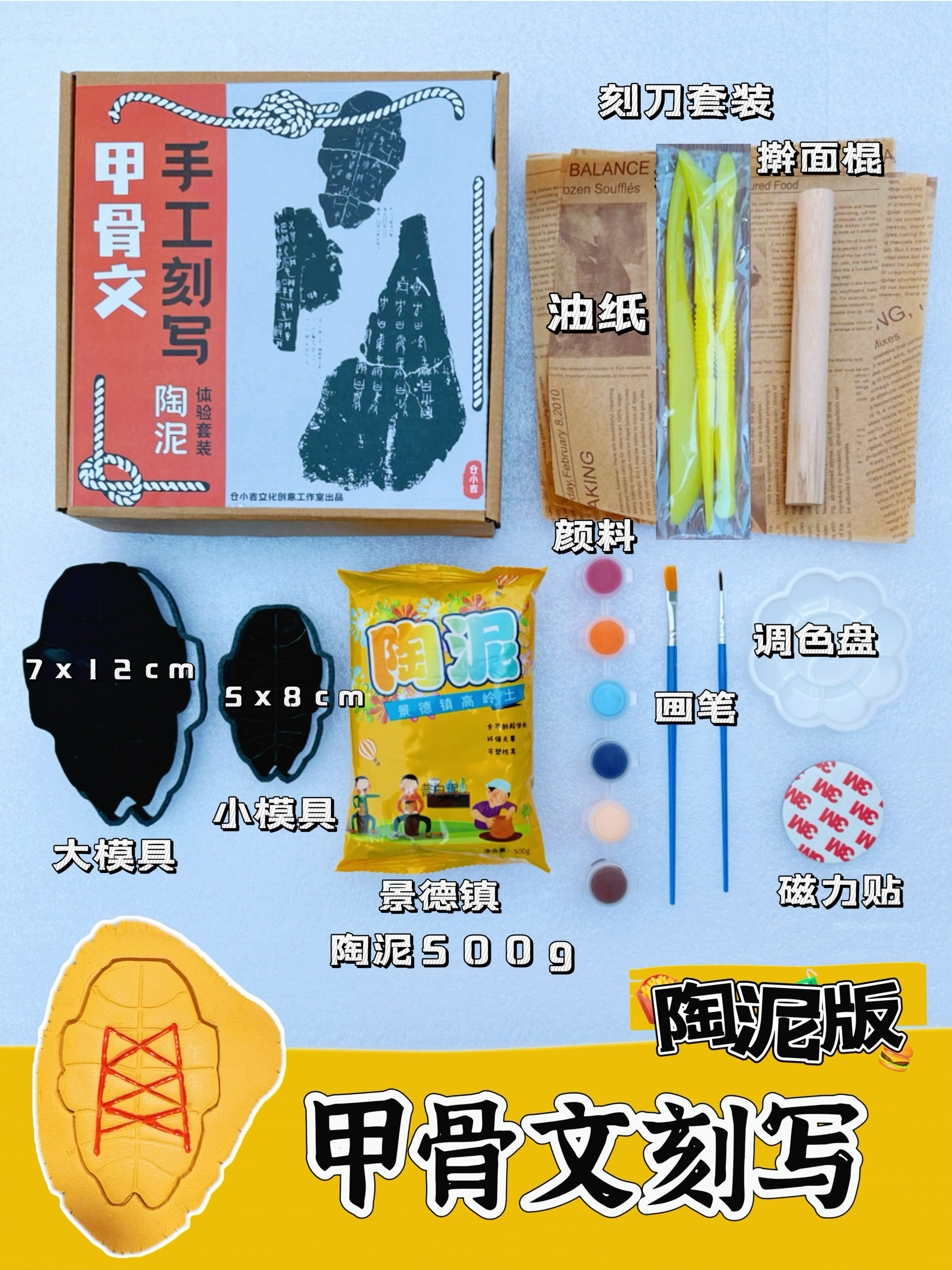 📚 甲骨文刻字陶泥版龟甲雕刻可磁吸DIY冰箱贴儿童手工考古研学非遗