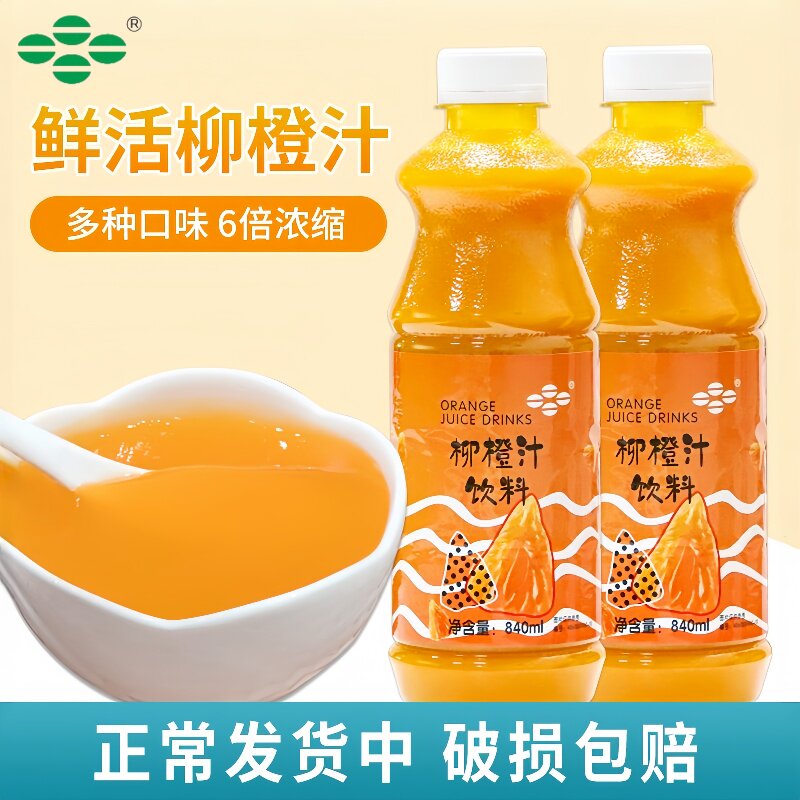 📚 鲜活果汁6倍柳橙含果肉饮料浓浆柳橙果粒浓缩果汁840ml奶茶原料