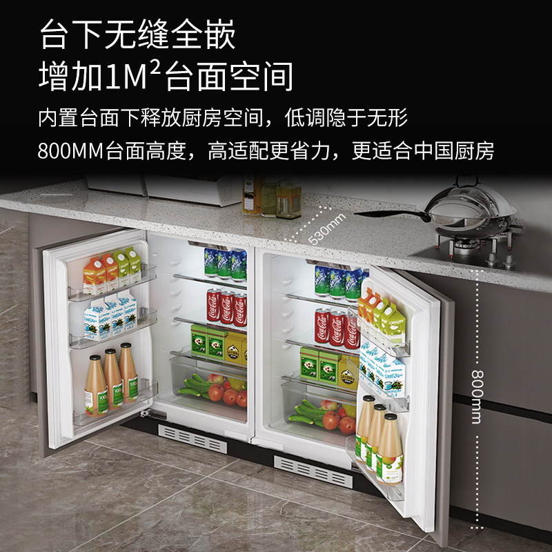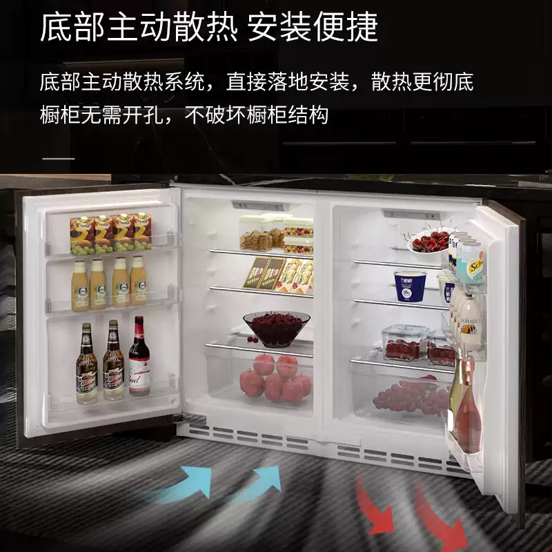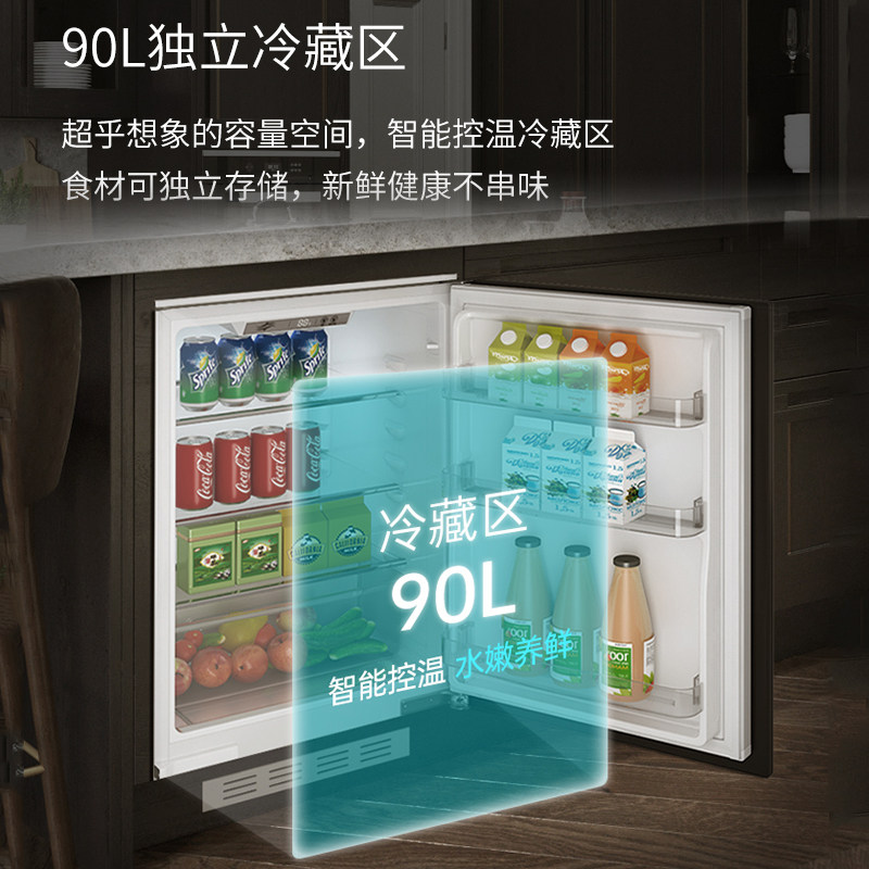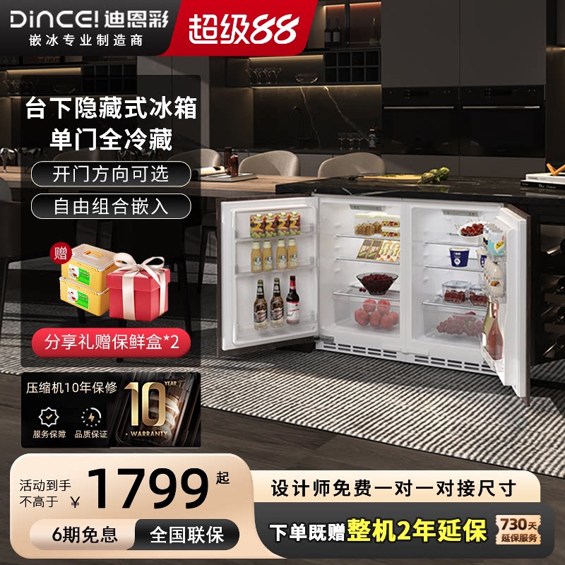 📚 DINCEI全嵌入卧式橱柜门一体家用单门台下内嵌隐藏迷你矮冰箱90升