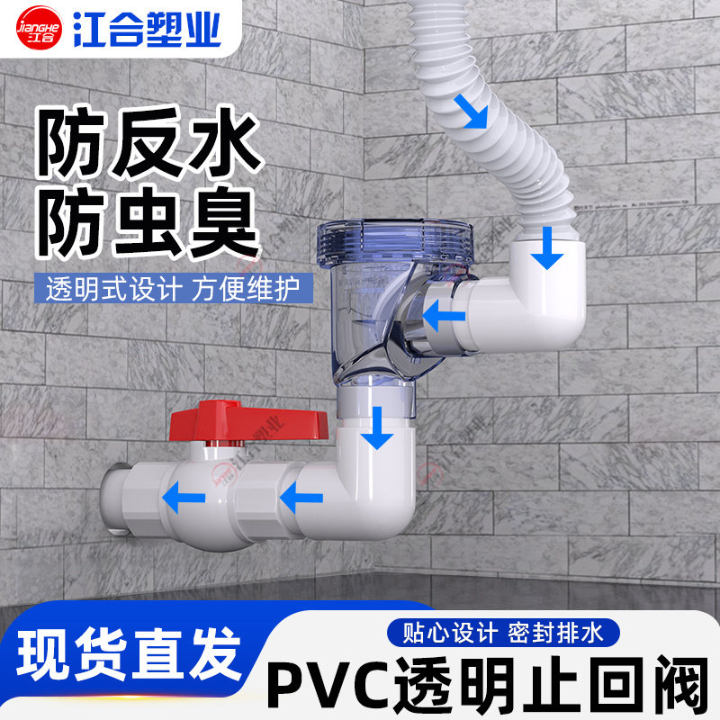 📚 PVC透明止回阀厨房50 75 110排水管水槽下水道防臭返水倒灌止逆阀