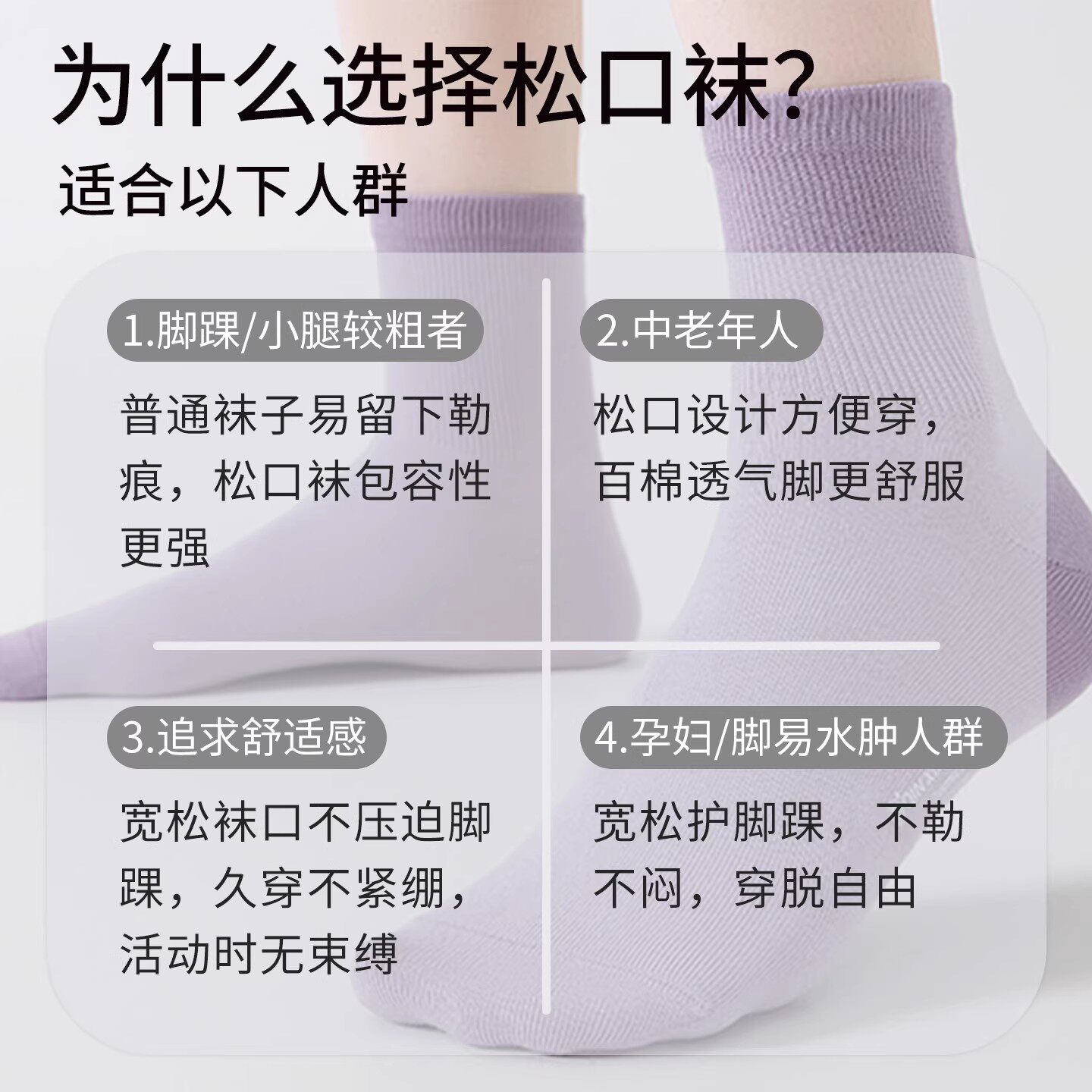 📚 亲相见100%棉袜子女纯棉松口袜夏薄款防臭抗菌白色无骨月子中筒袜