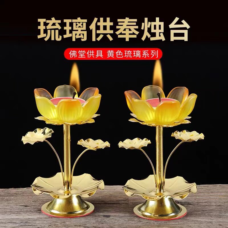 📚 琉璃莲花蜡烛台摆件仙家用酥油蜡烛灯座佛前创意荷花供佛灯酥油灯