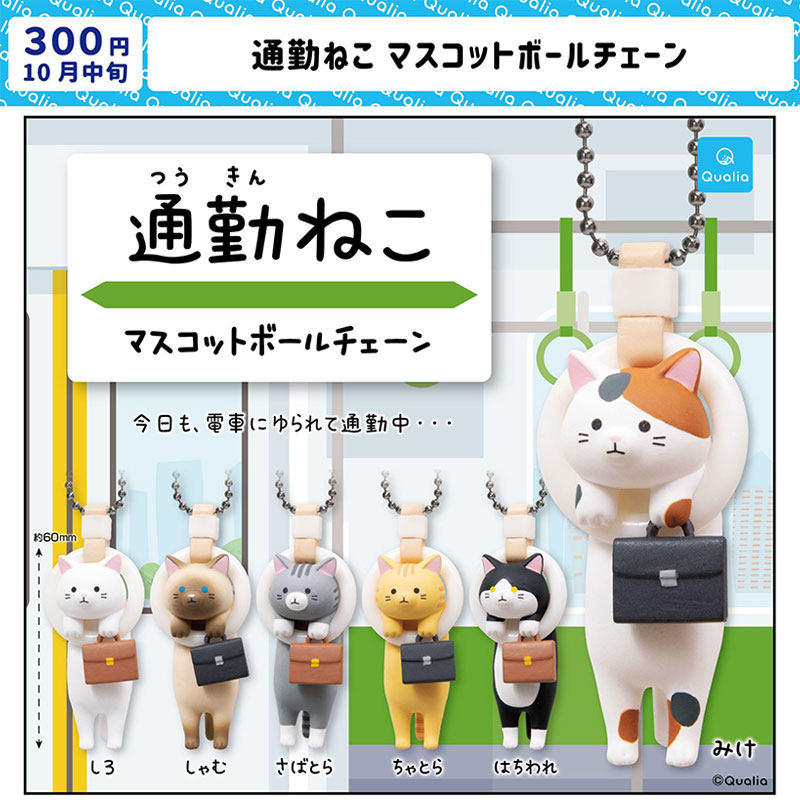 📚 现货日本Qualia 通勤猫 上下班的猫咪可爱挂件小动物吊饰扭蛋