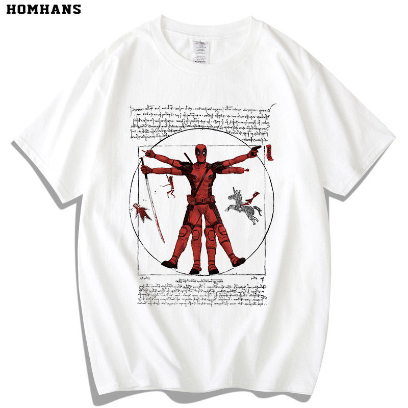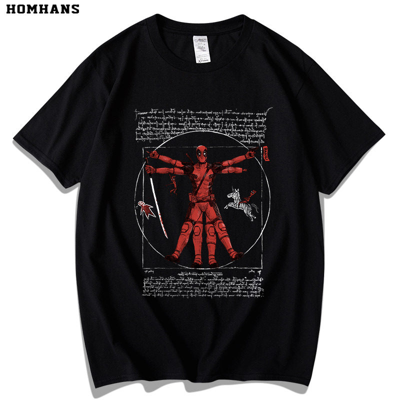 📚 红韩纯棉死侍T恤DEADPOOL电影男士短袖 漫威神盾局特工复仇联盟