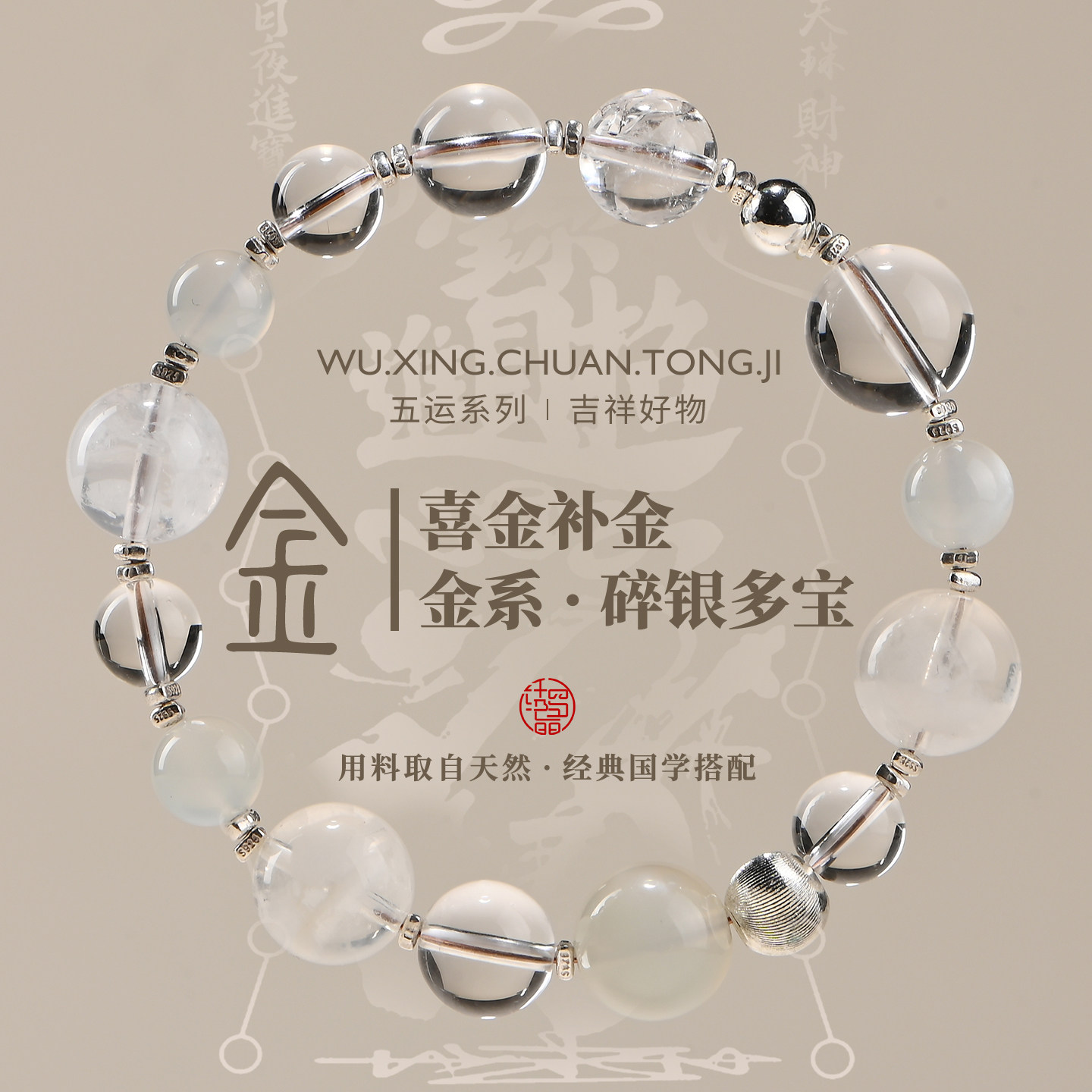 📚 五行缺金补金定制手链五行喜金饰品定制五行手串天然五行水晶手串