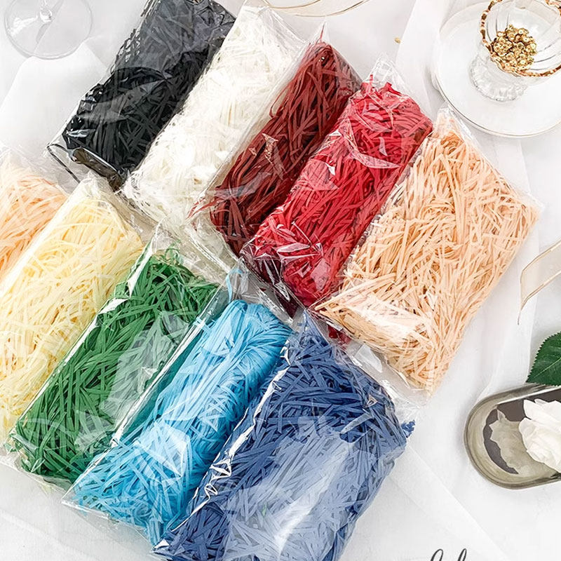 📚 欧美高端款拉菲草填充物碎纸丝结婚喜糖盒水果伴手礼品盒包装纸丝